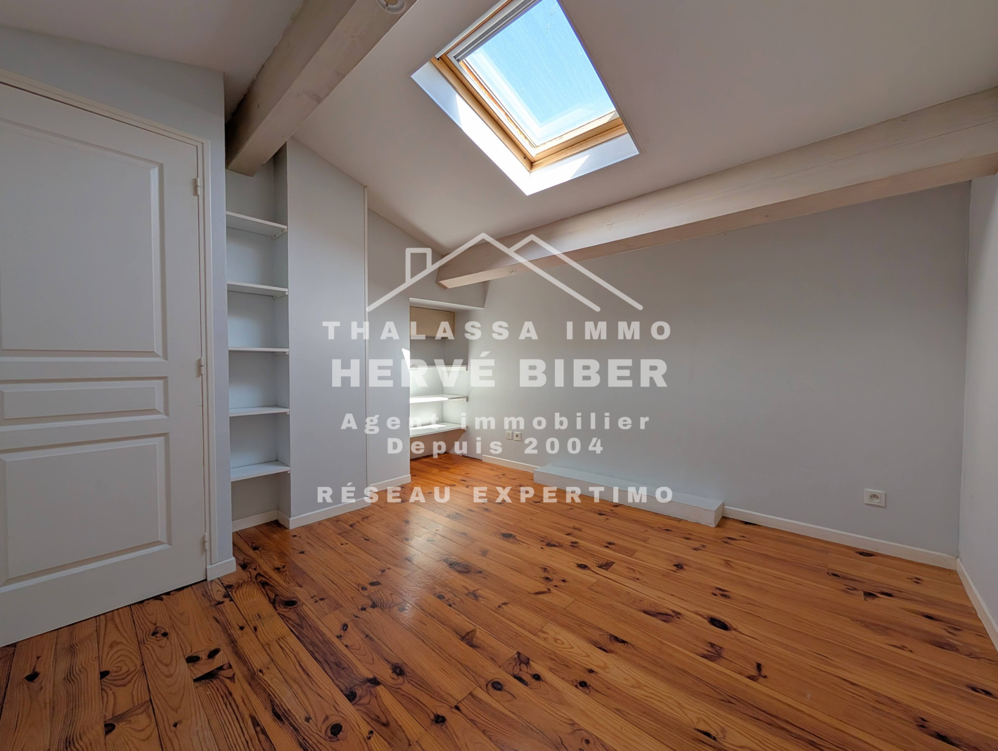 L’appartement comprend également une cuisine aménagée, deux chambres mansardées pleines de charme, ainsi qu’une cave.