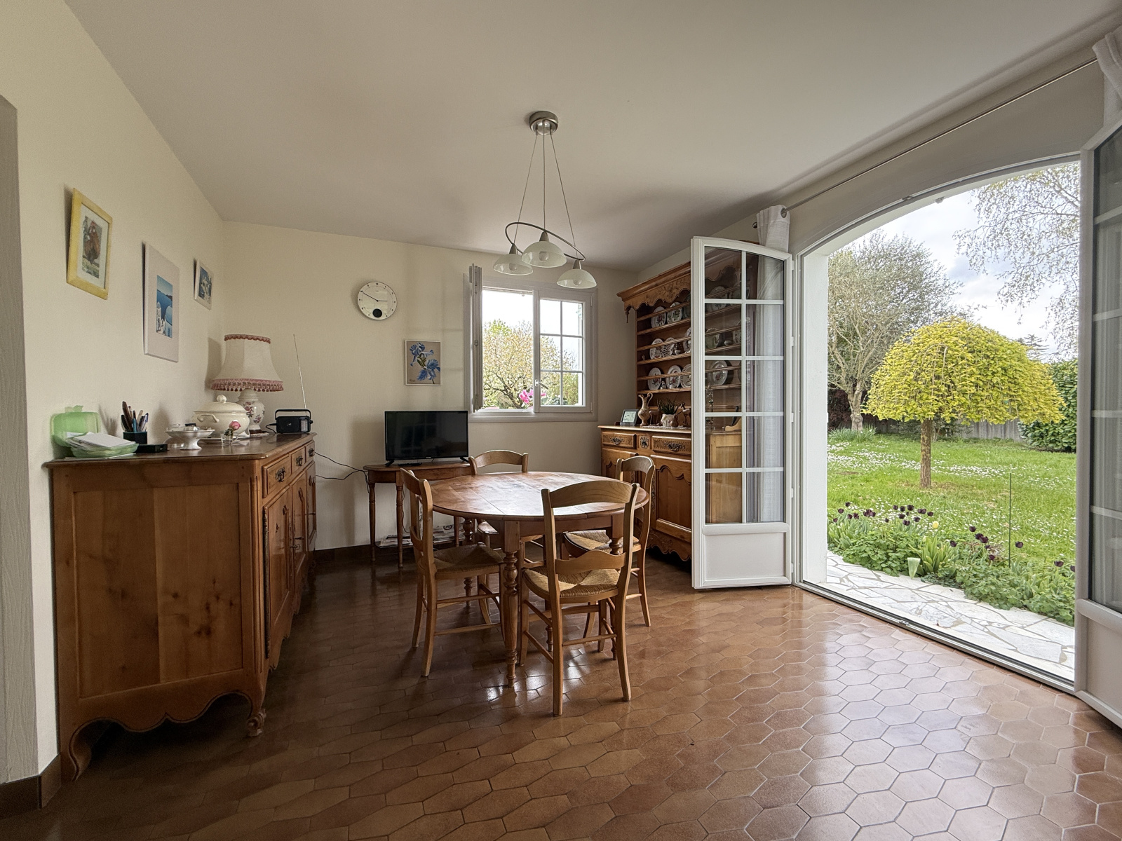 Située à Salles-sur-Mer, dans un cadre calme et préservé sans vis-à -vis, cette maison de plain-pied orientée Est/Ouest bénéficie d’une agréable luminosité tout au long de la journée. Idéalement placée, elle se trouve à seulement 12 km de La Rochelle, 5 km des plages de Châtelaillon-Plage et 20 km de Rochefort, offrant un parfait équilibre entre tranquillité et proximité du littoral. D’une surface habitable de 102,59 m², la maison propose une distribution fonctionnelle avec trois chambres d’environ 11 m² chacune, un salon-séjour spacieux et lumineux de 42 m², une cuisine indépendante, une salle d’eau, un WC séparé, ainsi qu’un cellier et une cave. Les menuiseries sont en PVC double vitrage. Le chauffage est assuré par radiateurs électriques et l’eau chaude est produite par un ballon électrique. Implantée sur un vaste terrain piscinable de 3 614 m², la propriété dispose également d’un puits. Elle bénéficie de 89 m² de dépendances, comprenant deux grands garages de 20 m² et 40 m² avec une belle hauteur sous plafond, parfaitement adaptés au stationnement d’un camping-car ou à l’exercice d’une activité artisanale. Une autre dépendance équipée d’une baie vitrée offre la possibilité d’aménager un bureau indépendant ou un espace de télétravail lumineux. Ce bien présente un fort potentiel pour une résidence principale avec projet professionnel, dans un environnement agréable à proximité de l’océan. Pour plus d’informations ou organiser une visite, n’hésitez pas à me contacter : Hélèna TRECOIRE au 06 31 30 95 19.