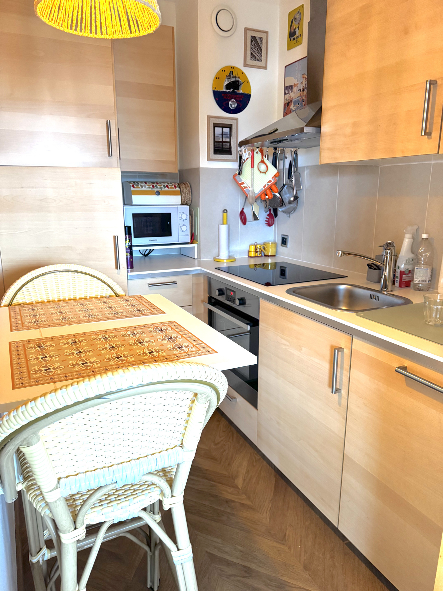 L’appartement se compose d’une cuisine indépendante, d’un bel espace salon / salle à manger, ainsi que d’un coin nuit parfaitement intégré à la pièce de vie. Grâce à ses portes à galandage, la chambre offre une vraie intimité et un confort digne d’une chambre séparéeainsi qu'un placard aménagé.