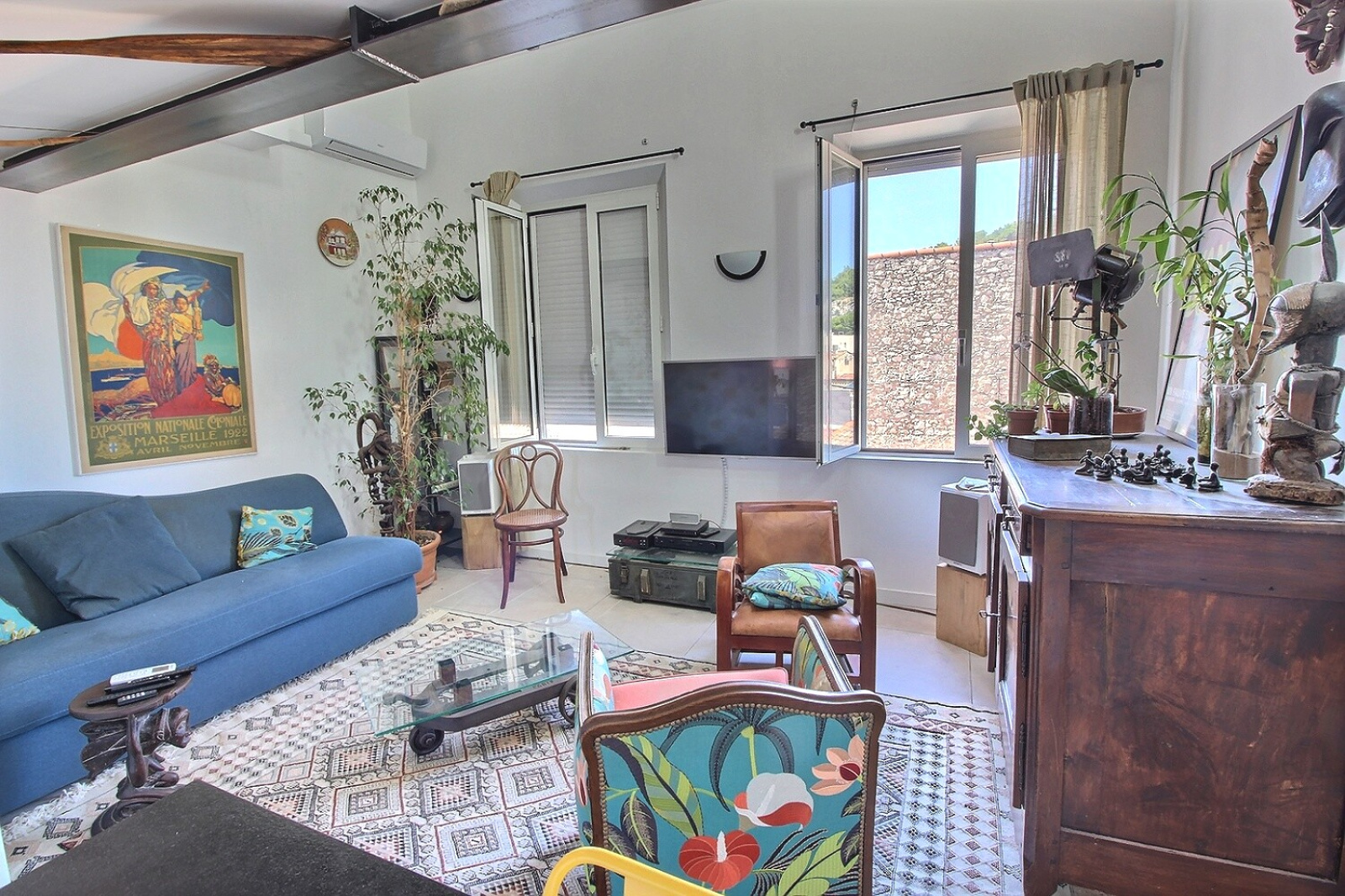 L'appartement est très lumineux avec ses nombreuses fenêtres.