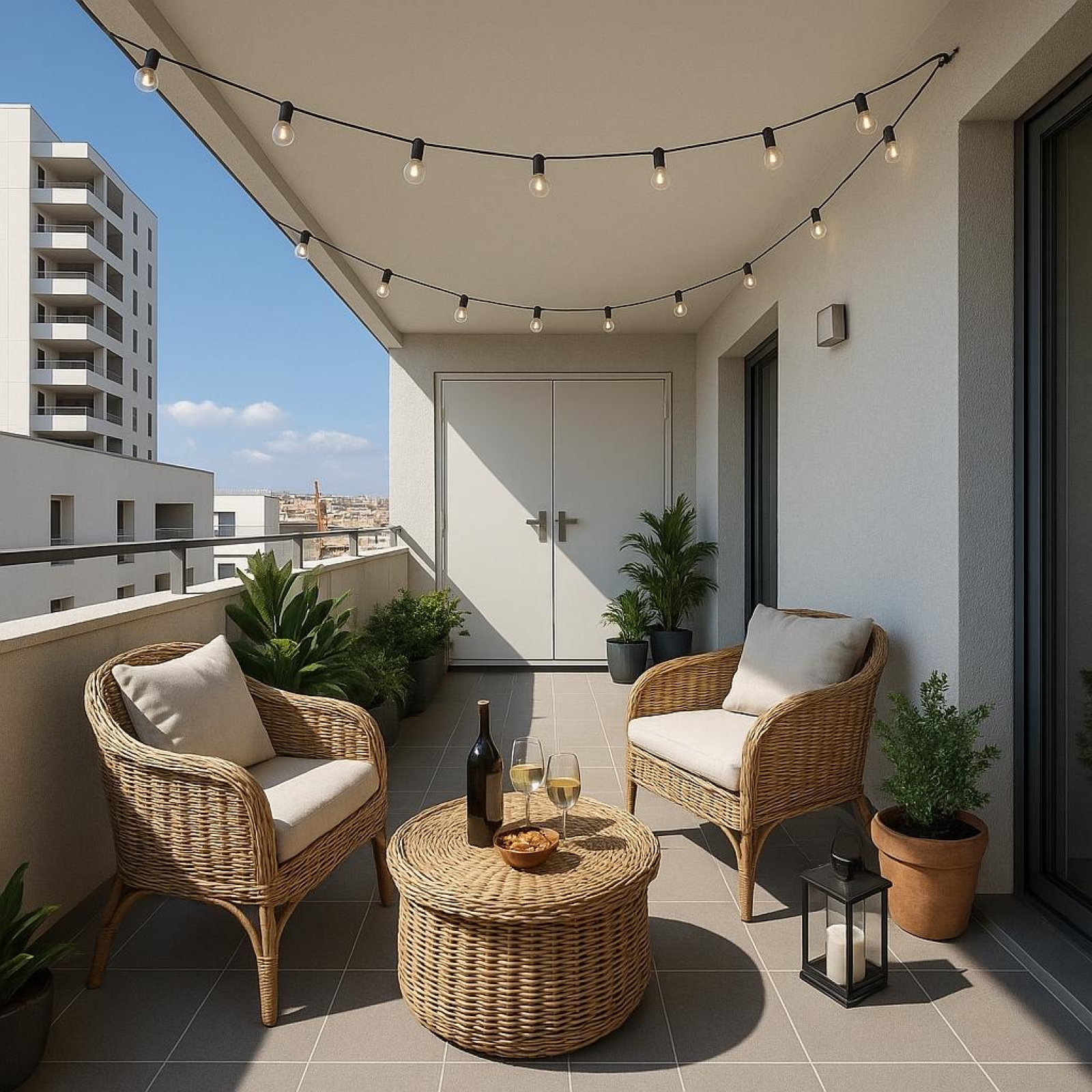 Une belle terrasse de 11m² exposée Est avec une petite vue mer