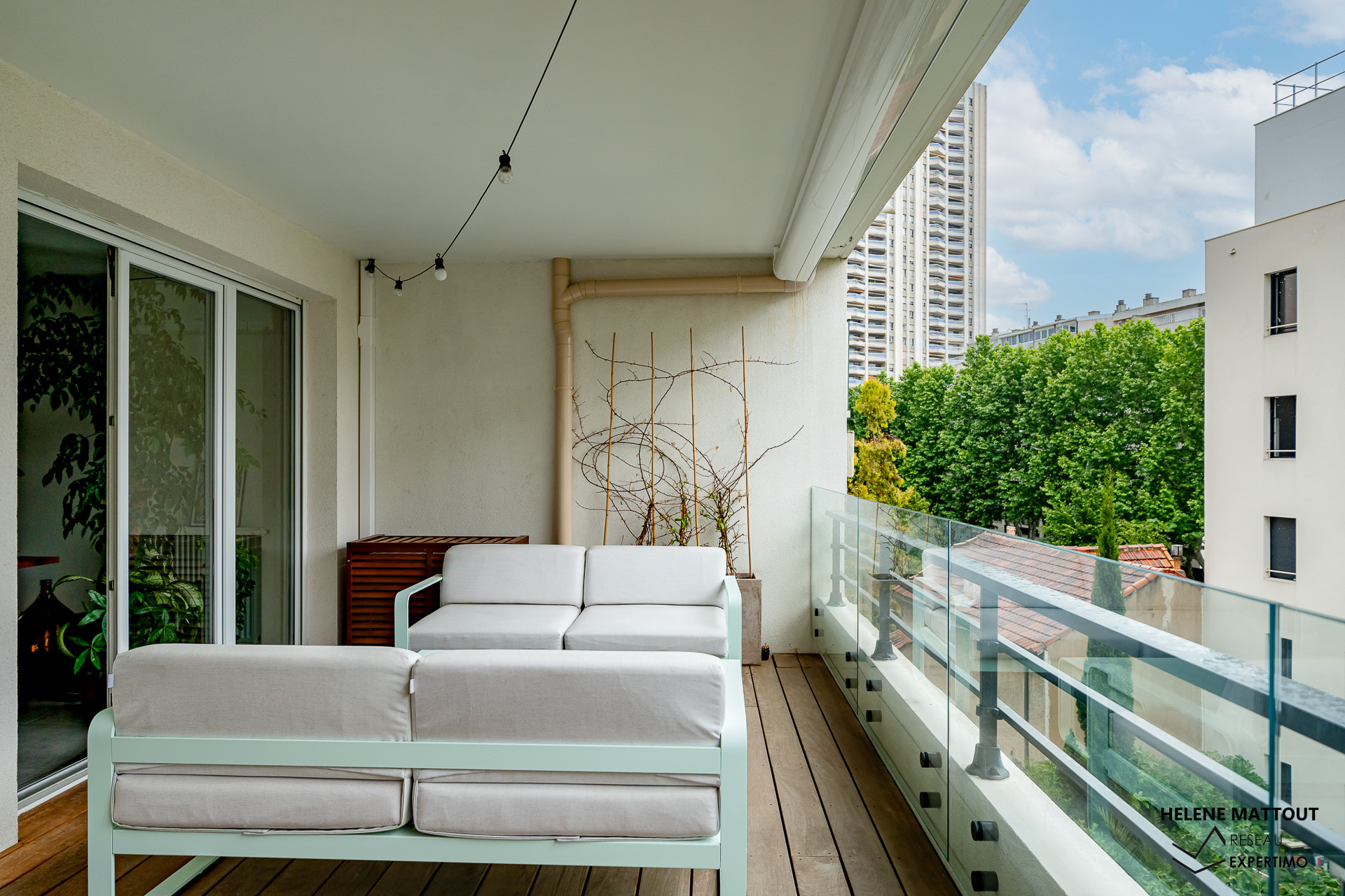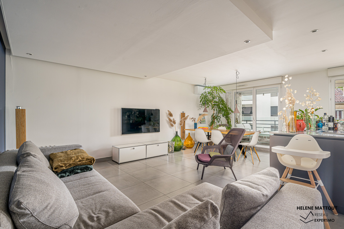 Cet appartement bénéficie d'un très bel espace de vie avec une cuisine ouverte entièrement équipée donnant sur une magnifique terrasse de 17 m2 au calme et ensoleillée.