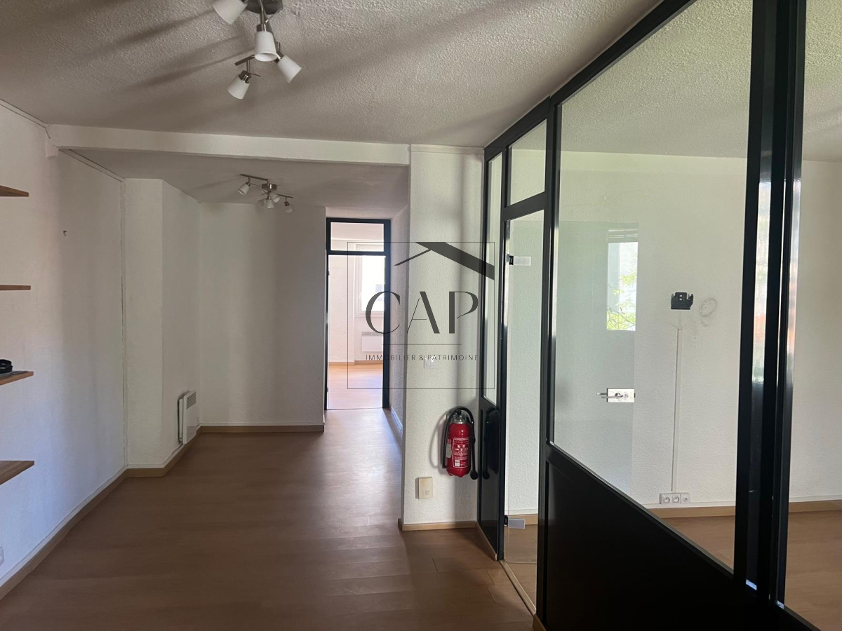 Local de bureaux de 68,83 m² (loi Carrez), situé au 1er étage d'un immeuble ancien (avant 1949), traversant, composé de 3 pièces. Actuellement loué à un avocat. Vendu occupé avec double destination : usage commercial et habitation.