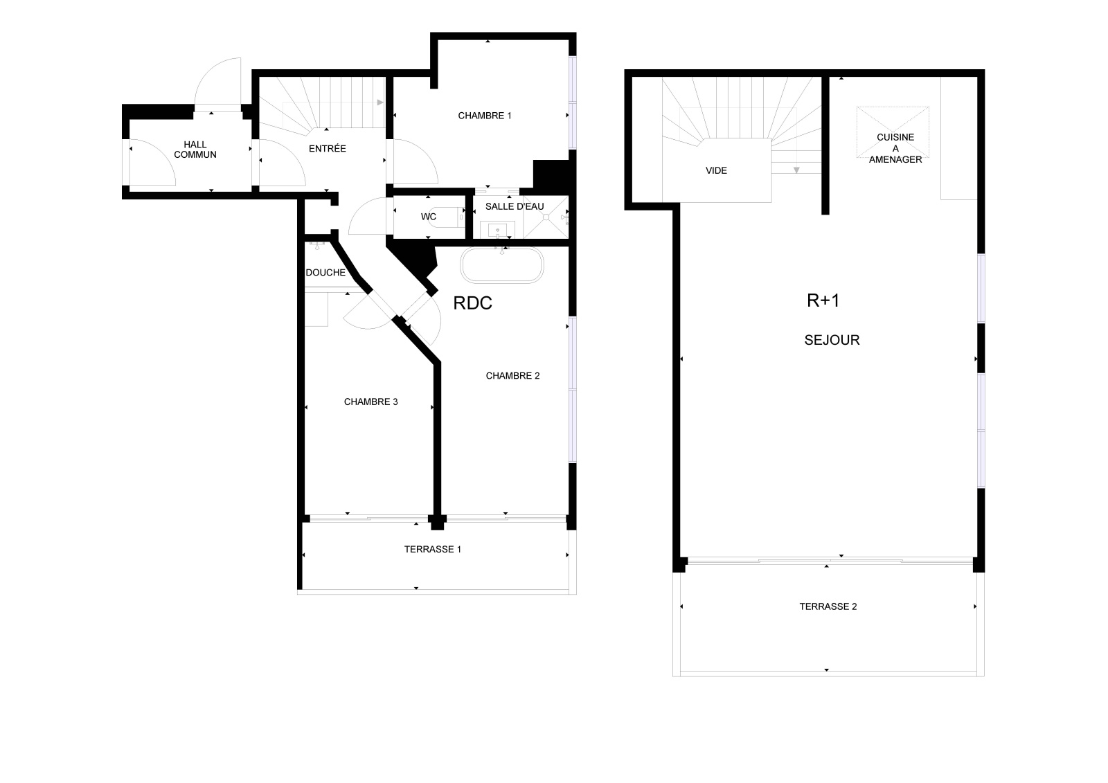 Deux chambres bénéficiant d'un accès direct à la terrasse.
