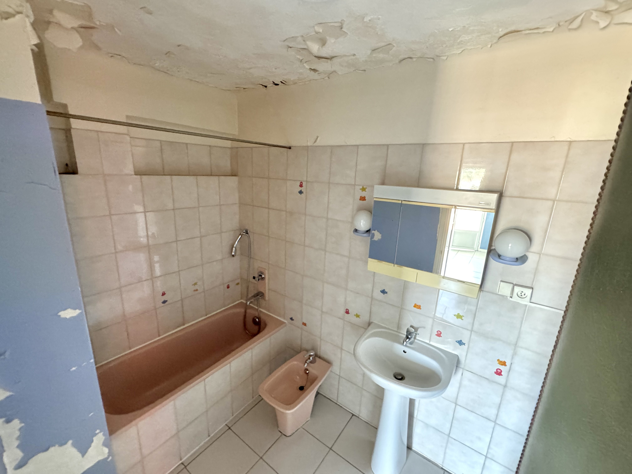 - Ancien dégât des eaux résolu, mais traces encore visibles