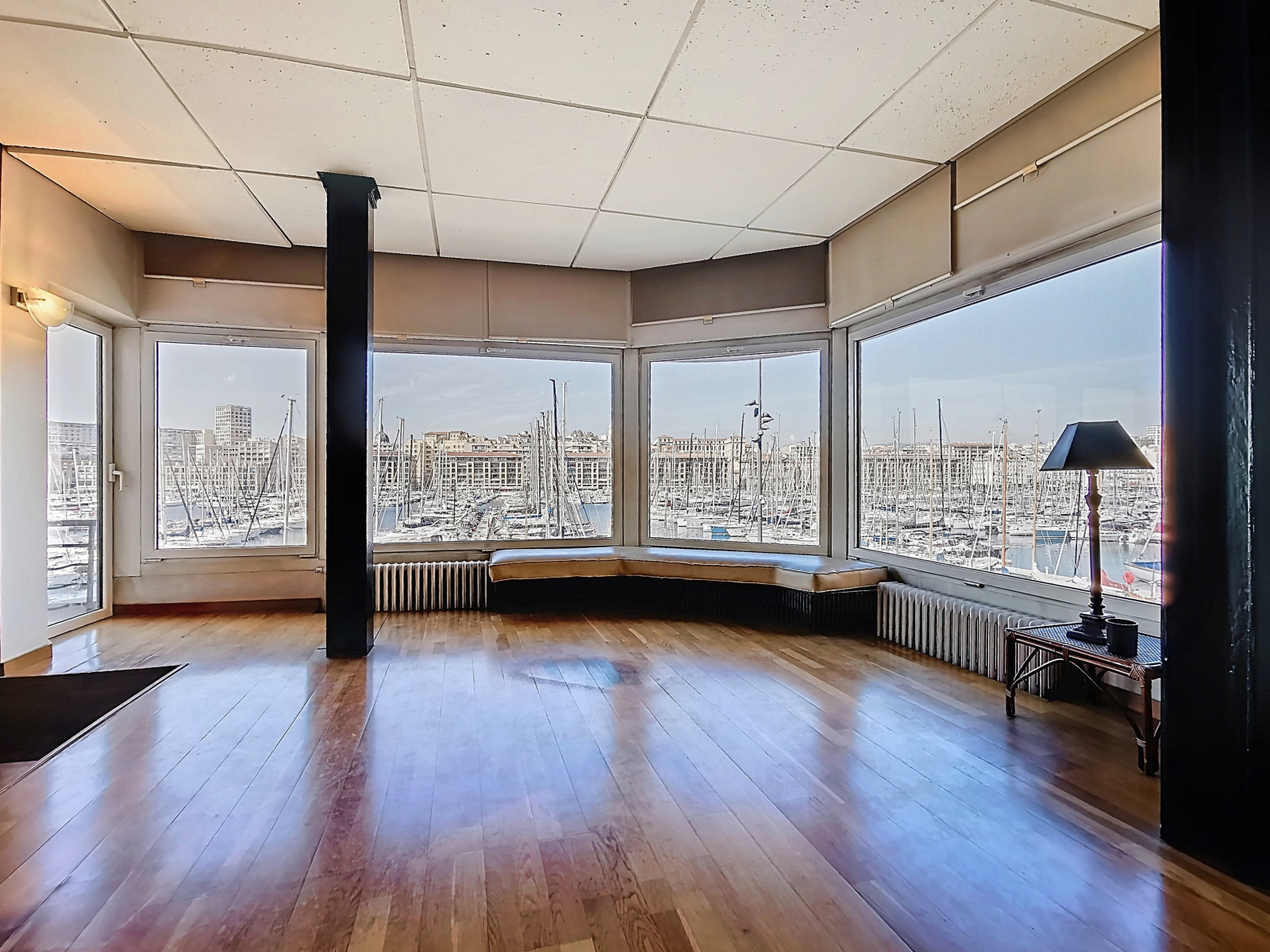 Face au Vieux-Port, dans l’immeuble emblématique Le Lacydon, cet appartement traversant de 128 m² Loi Carrez (133 m² au sol) offre une adresse unique et une vue à couper le souffle.