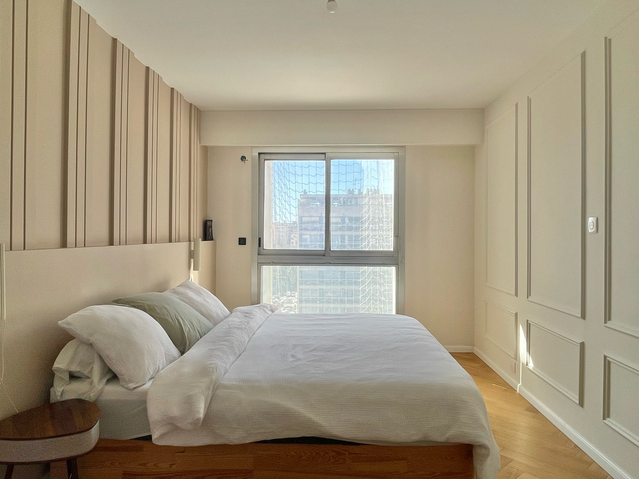 Une entrée avec bureau, une cuisine sur mesure ouverte sur un bel espace salon et une salle à manger, de grandes baies vitrées donnant sur l’extérieur côté Prado avec vue très dégagée expo SUD/OUEST, vue egalement sur Notre Dame de la Garde. Une belle chambre parentale avec salle d’eau, une grande pièce dressing et un wc . Coté enfants 2 belles chambres avec salle de bains, un wc et de nombreux rangements .