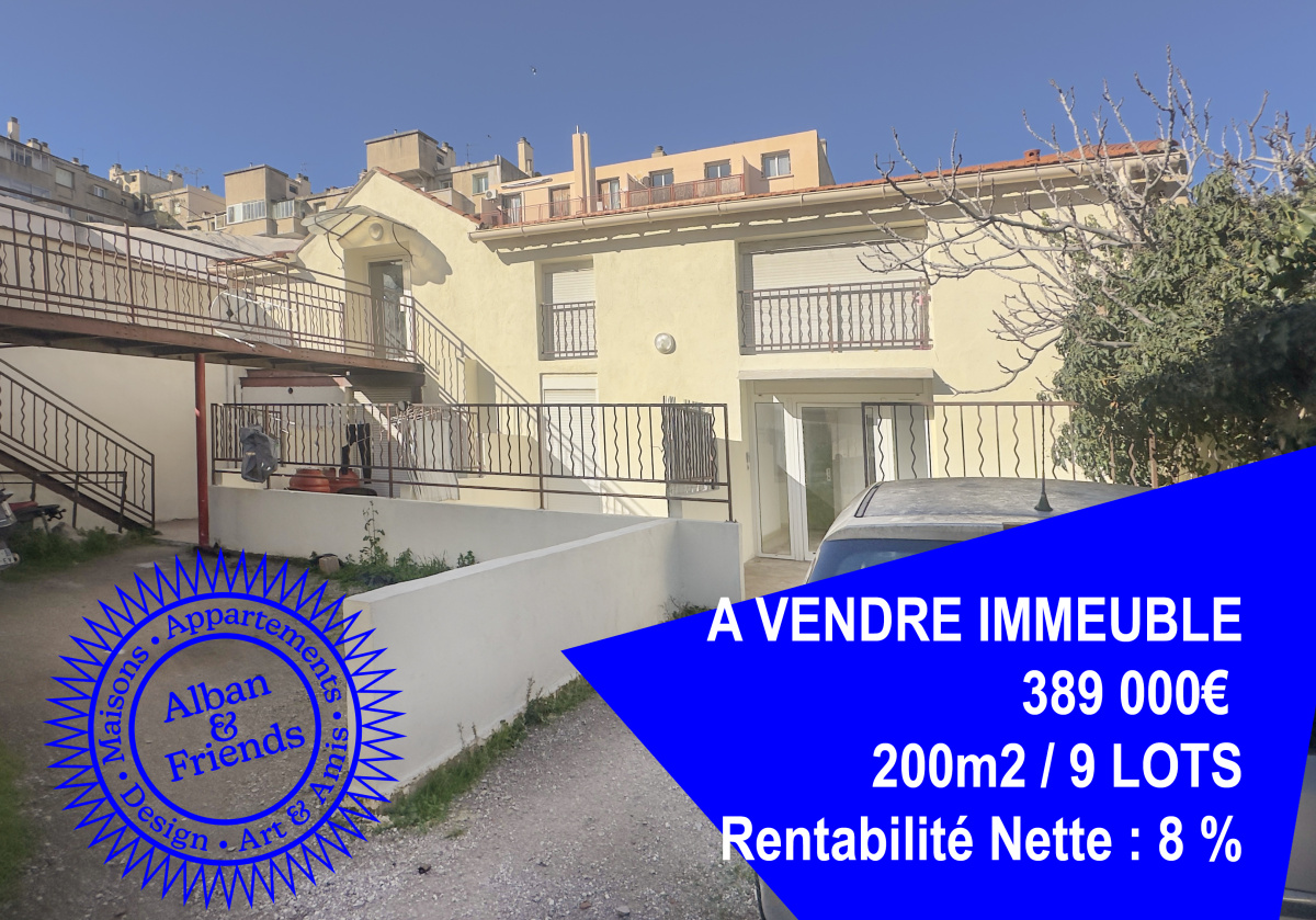 Petit immeuble de rapport composé de 9 appartements studio (environ 200 m² habitables), situé rue du 141e RIA, au calme au fond d’une impasse, dans le 3e arrondissement de Marseille, à 5 minutes de la Gare Saint-Charles.