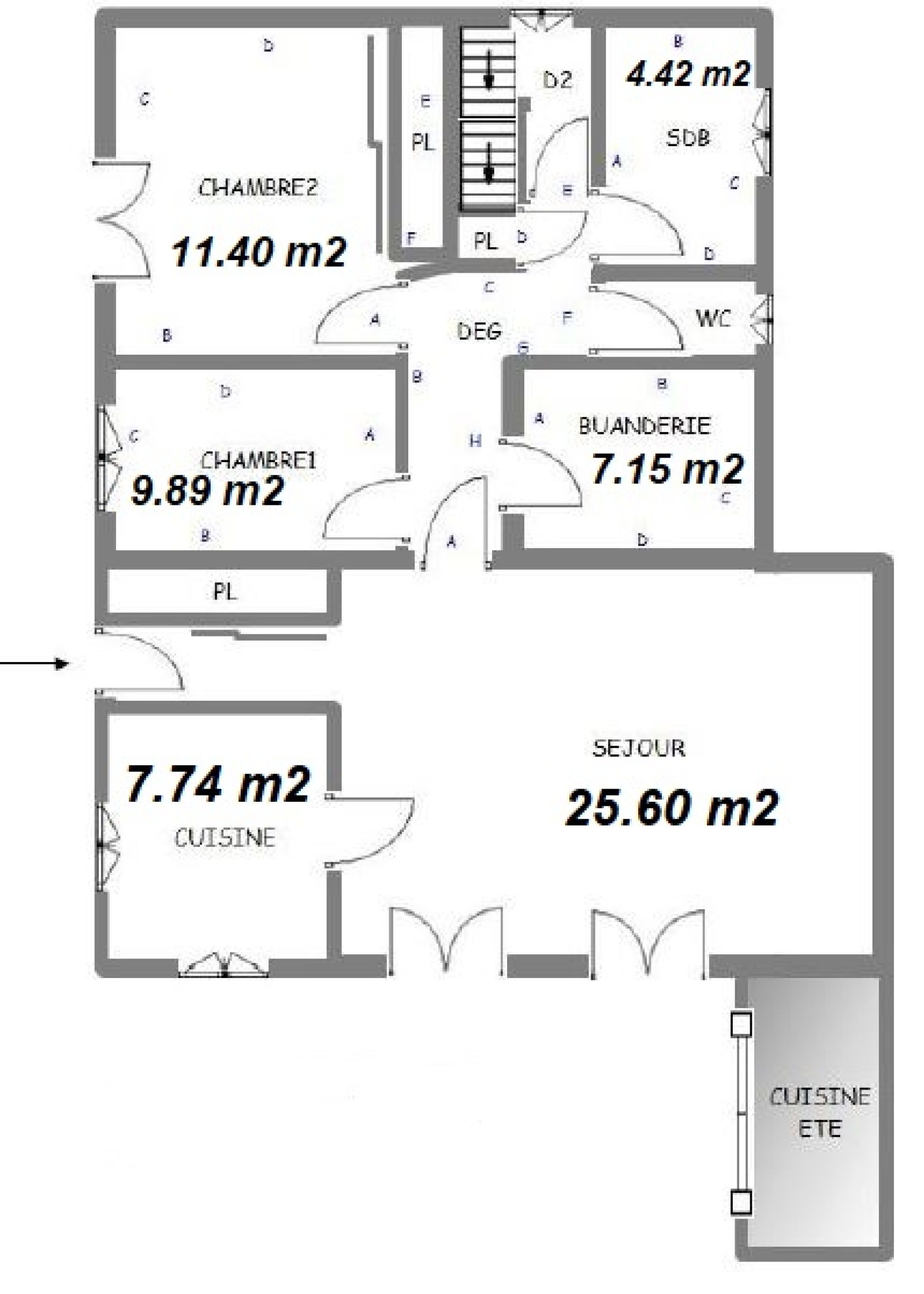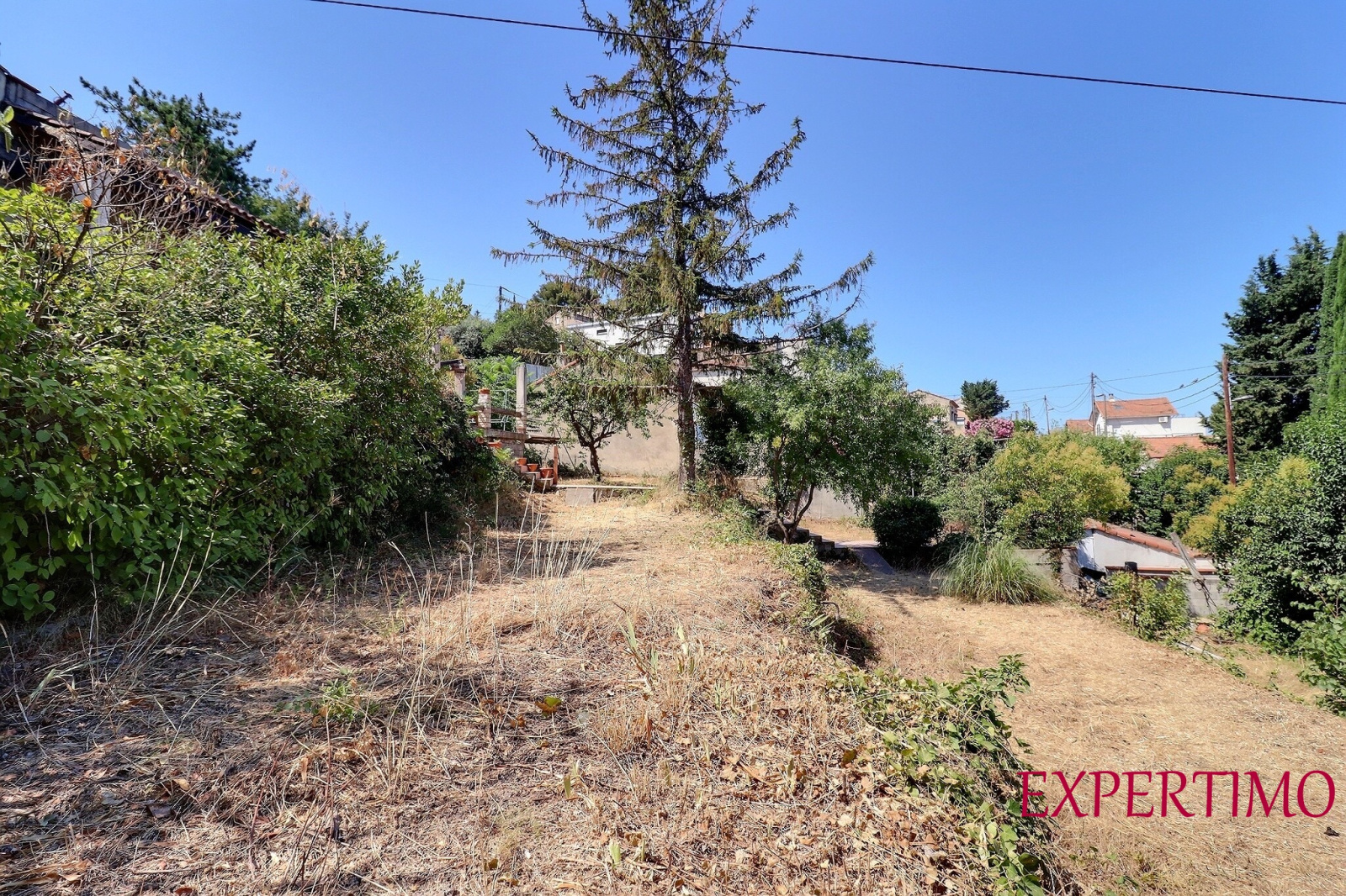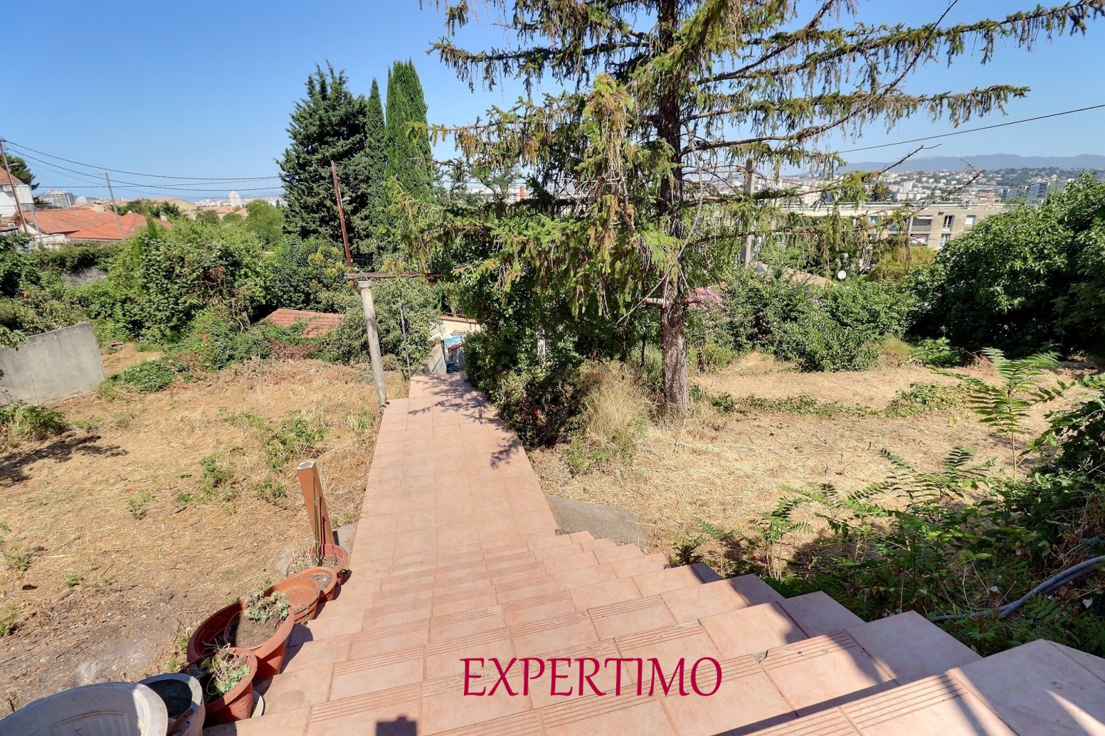 Vous accédez à la propriété par un escalier attenant à un grand garage de 56 m², suivi d'un escalier et de quelques restanques menant à la maison.