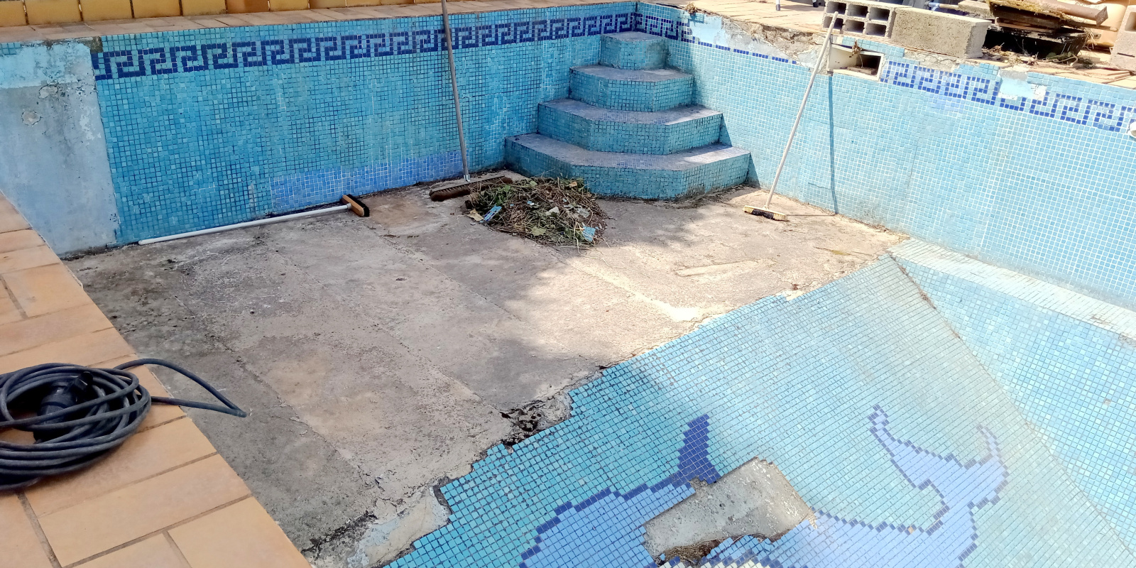 En rez-de-chaussée, la propriété se compose actuellement de deux chambres, d'une cuisine d'été à aménager, et d'un ancien studio. Une grande piscine, également à rénover, avec une profondeur progressive, complète ce bien.