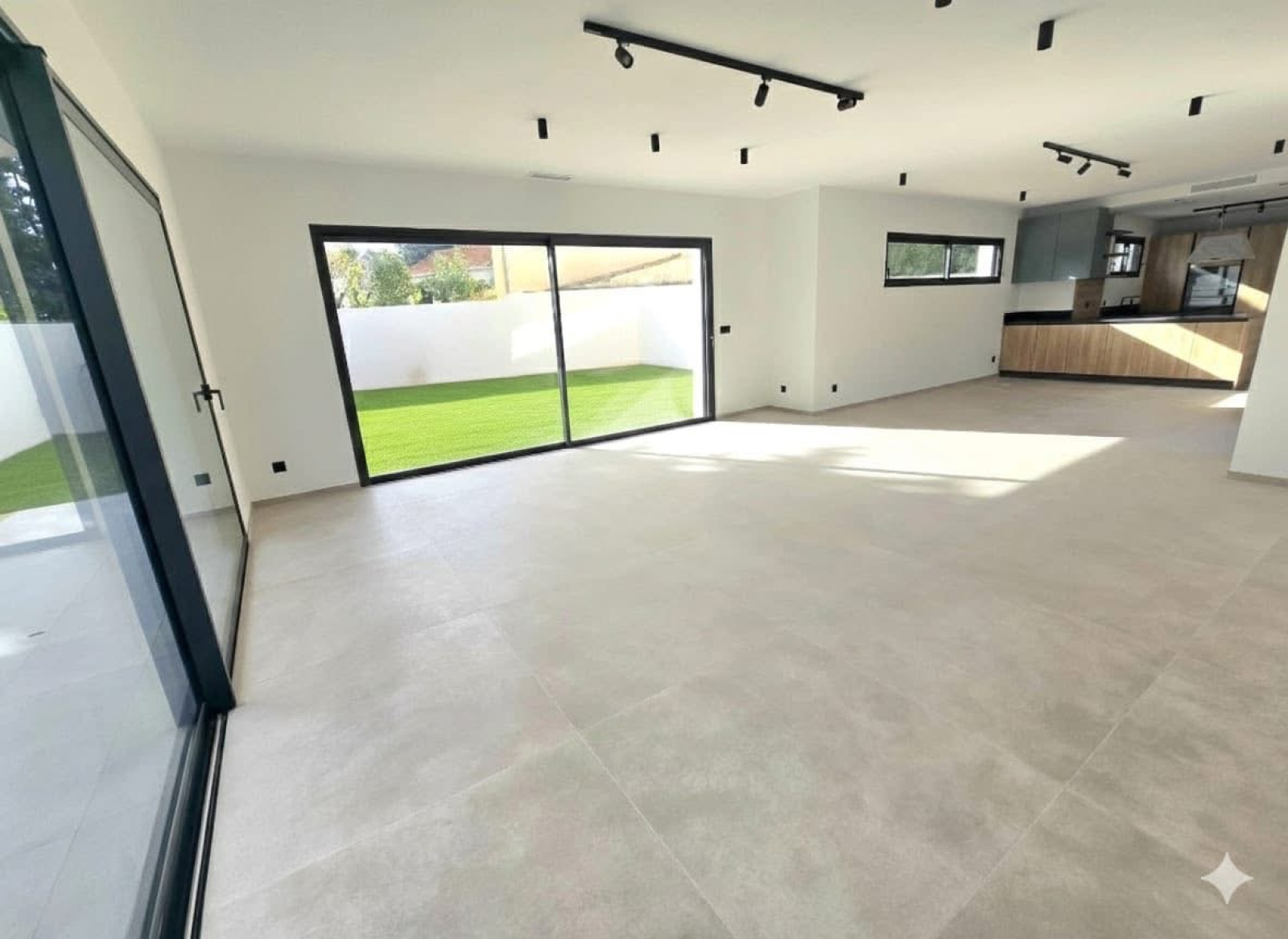 En entrant votre regard portera sur cette IMMENSE pièce BAIGNÉE de LUMIÈRE composée d'une cuisine moderne ouverte sur le salon aux LARGES BAIES VITRÉES et SANS VIS à VIS.