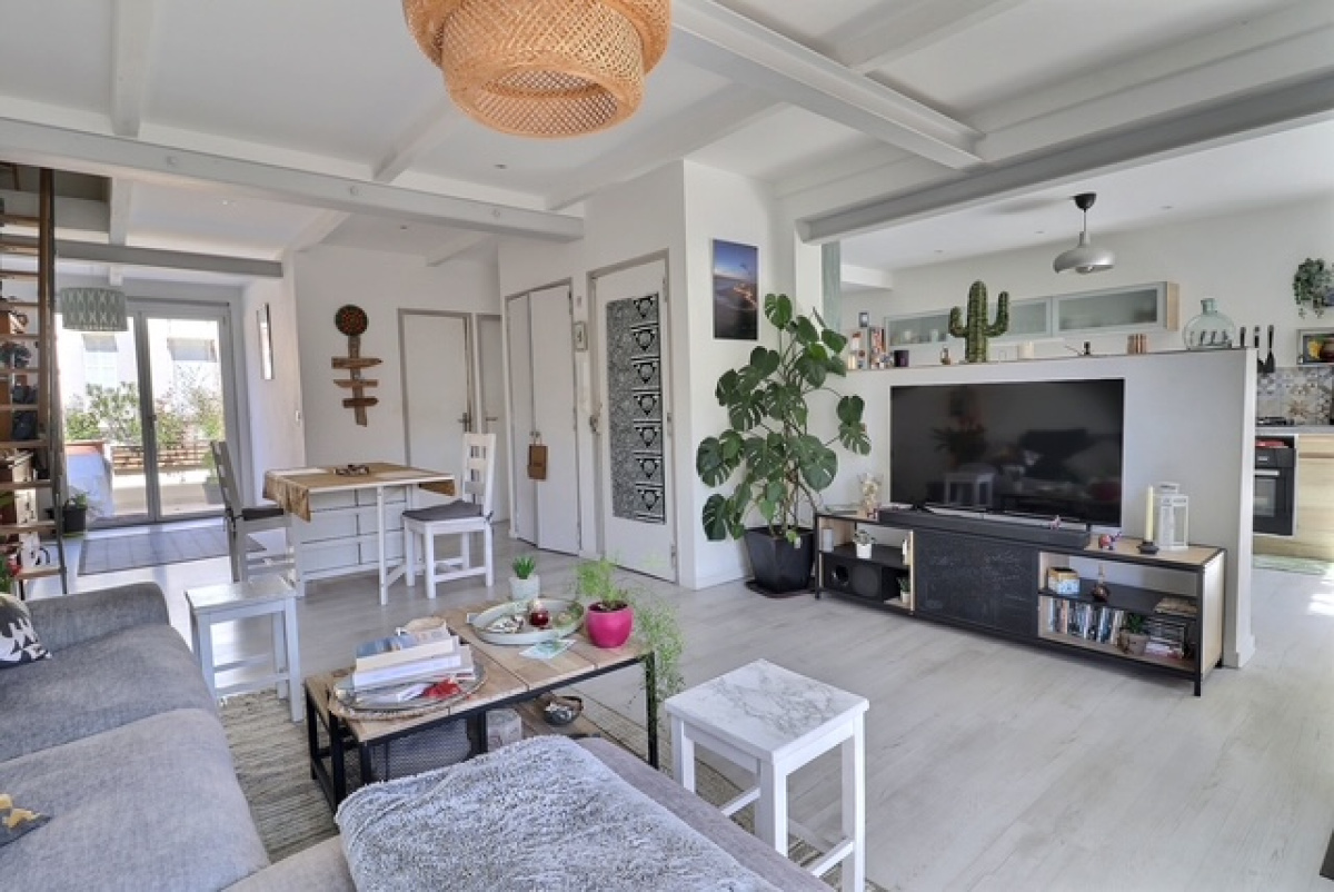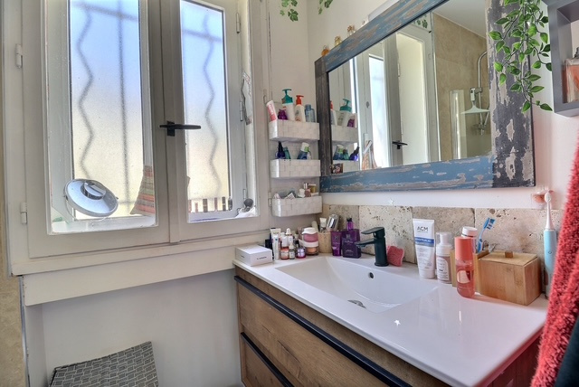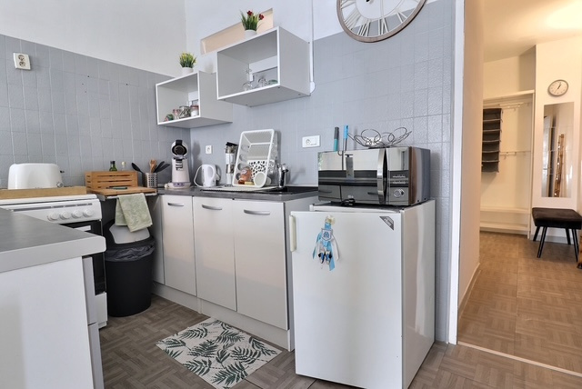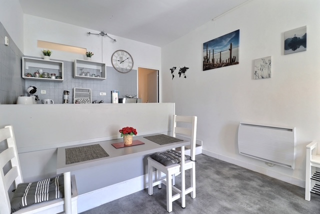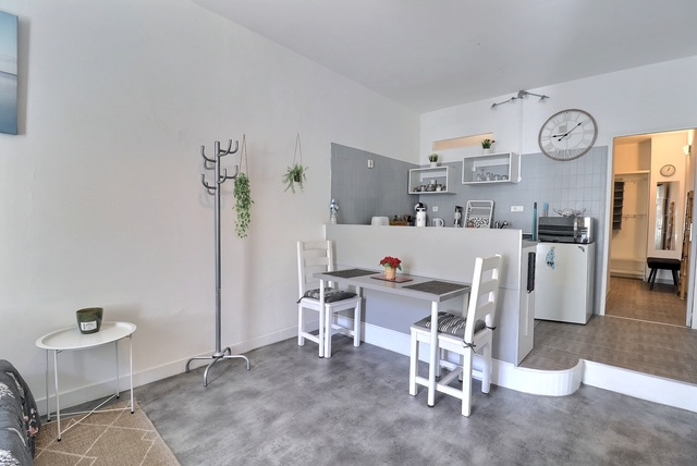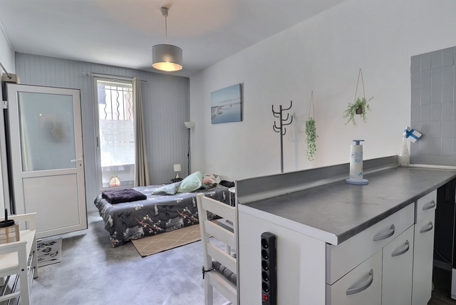 Au rez de chaussée, vous trouverez un studio à part entière de 32m2, en excellent état, loué en location saisonnière toute l'année. Il offre une pièce principale, une cuisine américaine, une salle d'eau et un wc séparé.