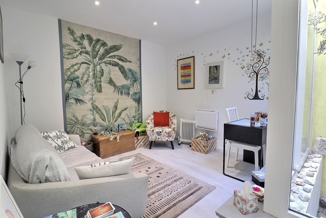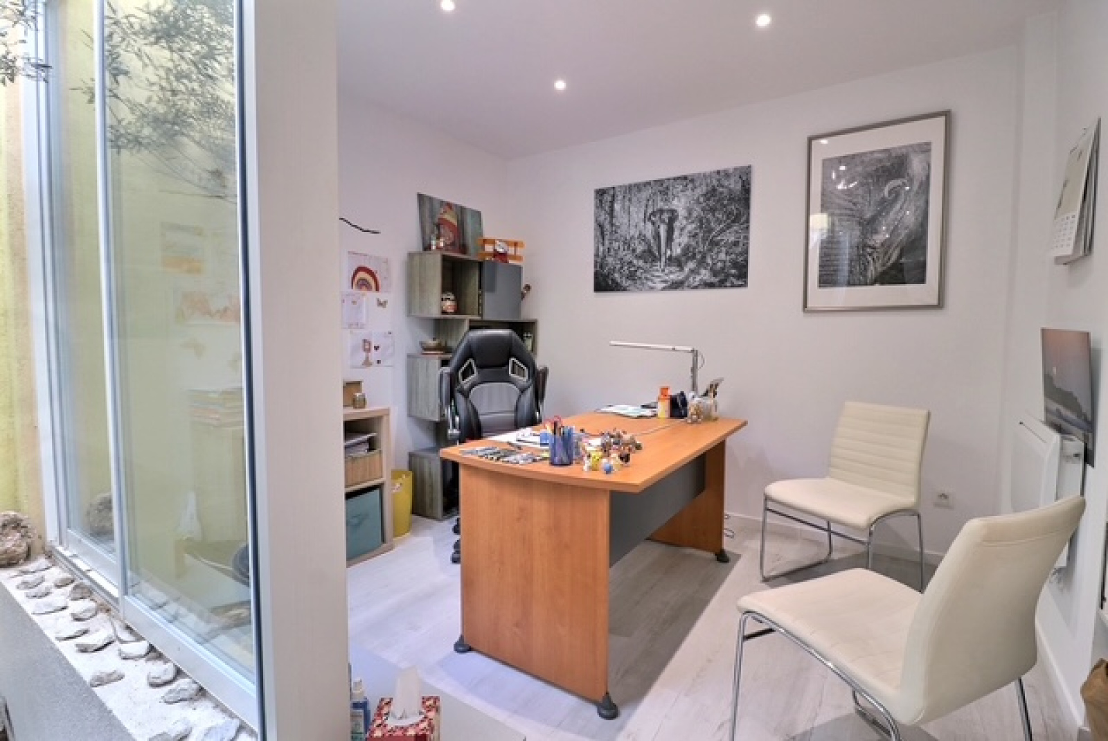 Au même niveau, vous disposez d'un très agréable bureau éclairé par un magnifique puit de lumière, actuellement utilisé en bureau professionnel pour une activité libérale. Attenant au bureau, se trouve une pièce servant de salle d'attente avec wc intégrés.