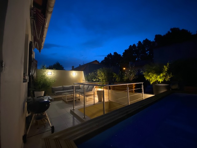 Au 1er étage, vous entrez dans la partie habitation de la maison qui a été également entièrement rénovée : une grande pièce ouverte et lumineuse de 48m2 accueuille le salon et la cuisine ouverte complètement équipée et aménagée. Dans la continuité de la pièce une belle terrasse de 20m2, au calme absolu et donnant sur un jardin, vous offre la possibilité de profiter d'une piscine hors sol, d'un jacouzi ou simplement d'un salon d'extérieur pour vos soirées d'été. Sur cet étage, se trouve également une chambre de 13m2 ainsi qu'une salle de bain et des wc.