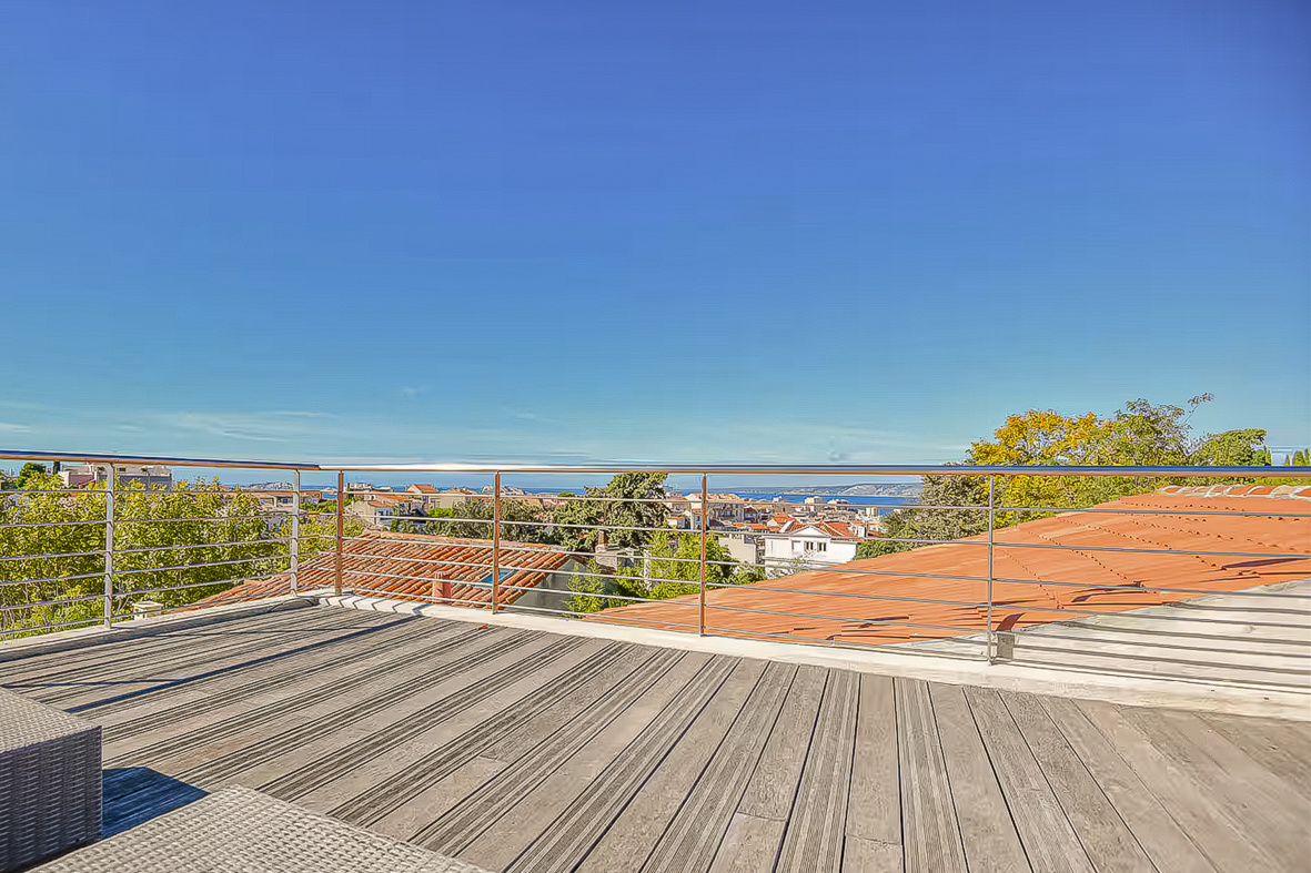 Pour compléter cette maison d’exception, pour les amoureux de la mer et des spots exceptionnels, vous découvrirez un toit terrasse d’environ 40m2, vue mer et Notre Dame de la Garde, où au coucher de soleil les apéritifs s’éterniseront…