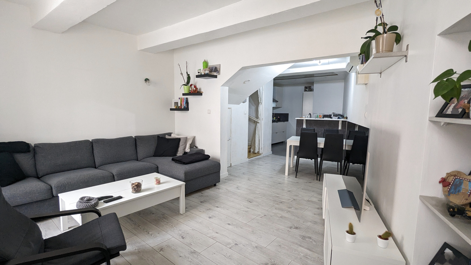Entièrement rénovée en 2016, la maison offre tout le confort nécessaire . Vous y trouverez au rez de chaussée un espace de vie où les espaces sont bien optimisés, avec cuisine équipé moderne, ouverte sur le salon et salle à manger, au 1er et 2ème étage, deux chambres équipées de climatisation, parfaites pour les chaudes journées d'été, ainsi qu'une salle de bains.