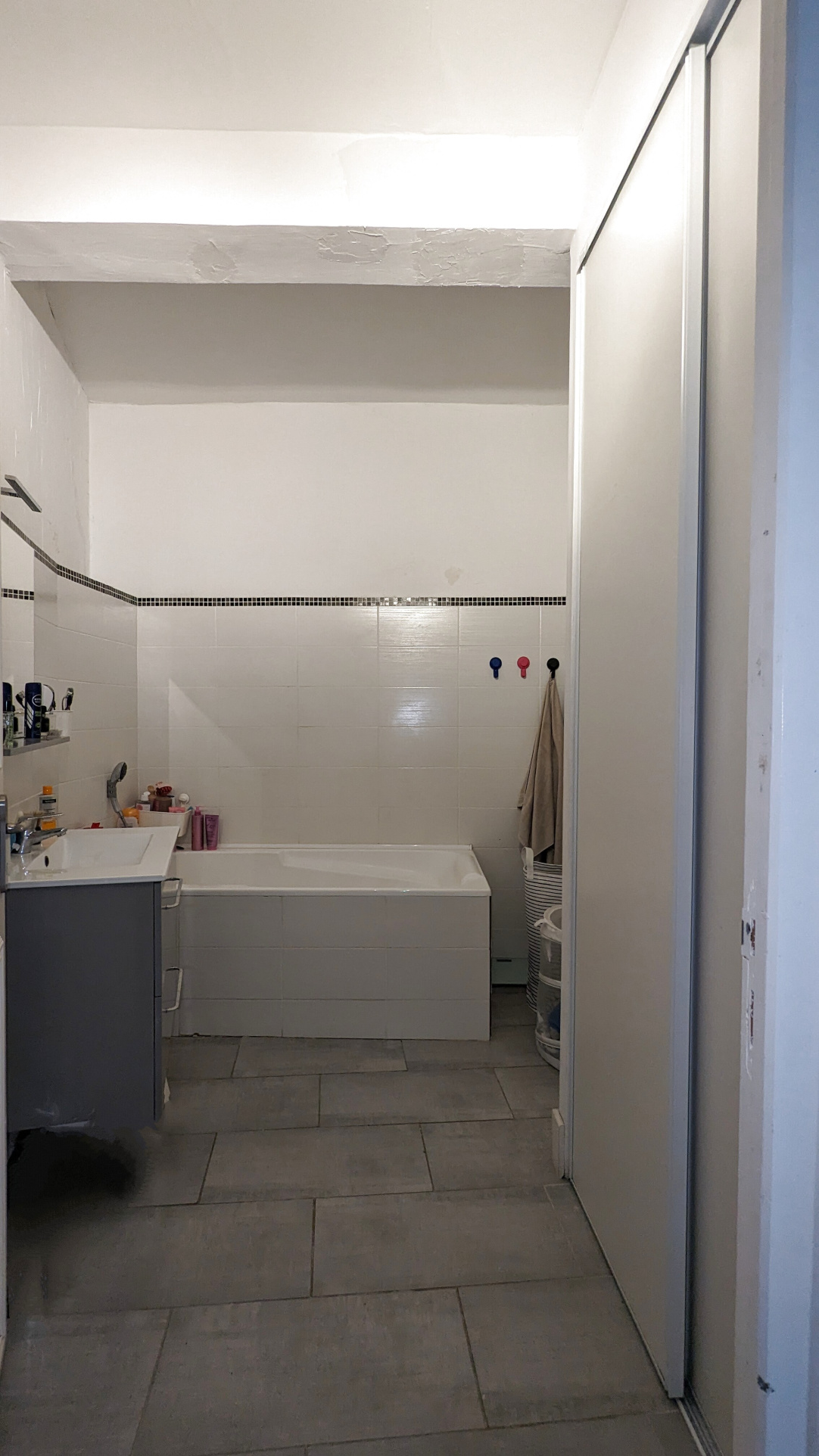 Baignoire et placard intégré.