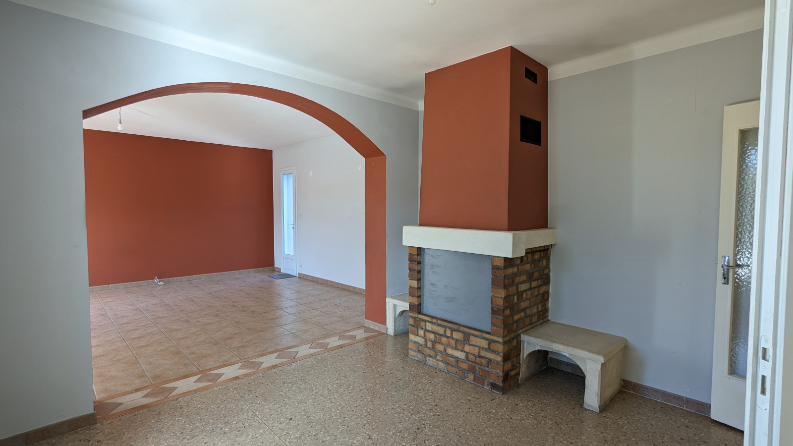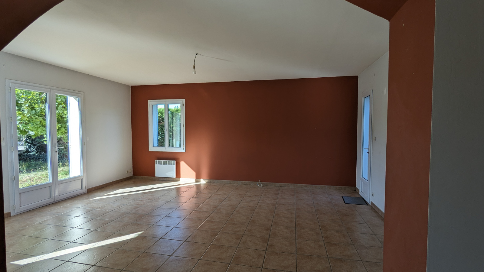 Belle espace de vie, lumineux grace aux nombreuses fenêtres et portes fenêtres.