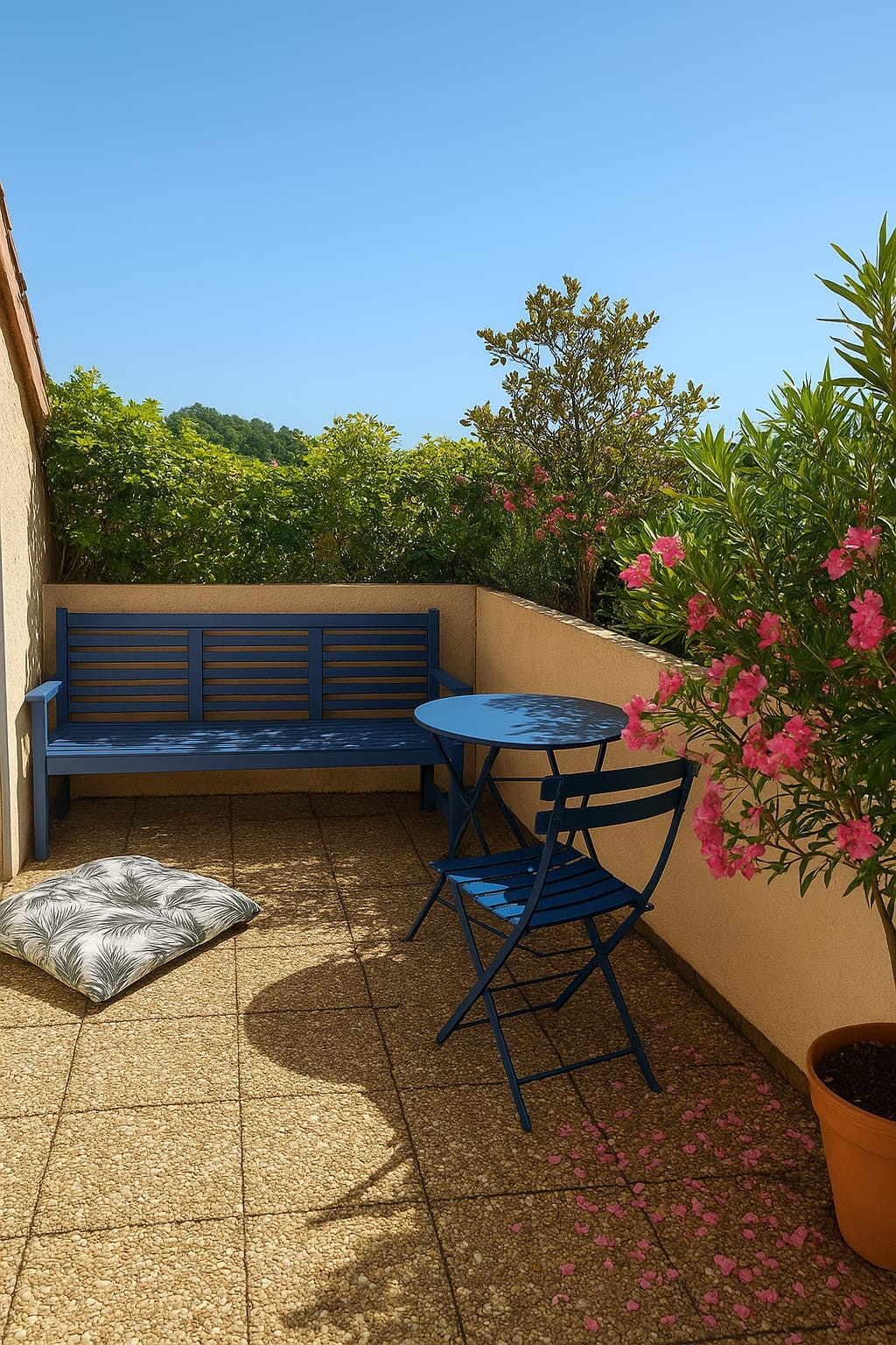 Cet espace de vie donne accès à une terrasse de 8 m² sans vis-à -vis, avec vue dégagée.