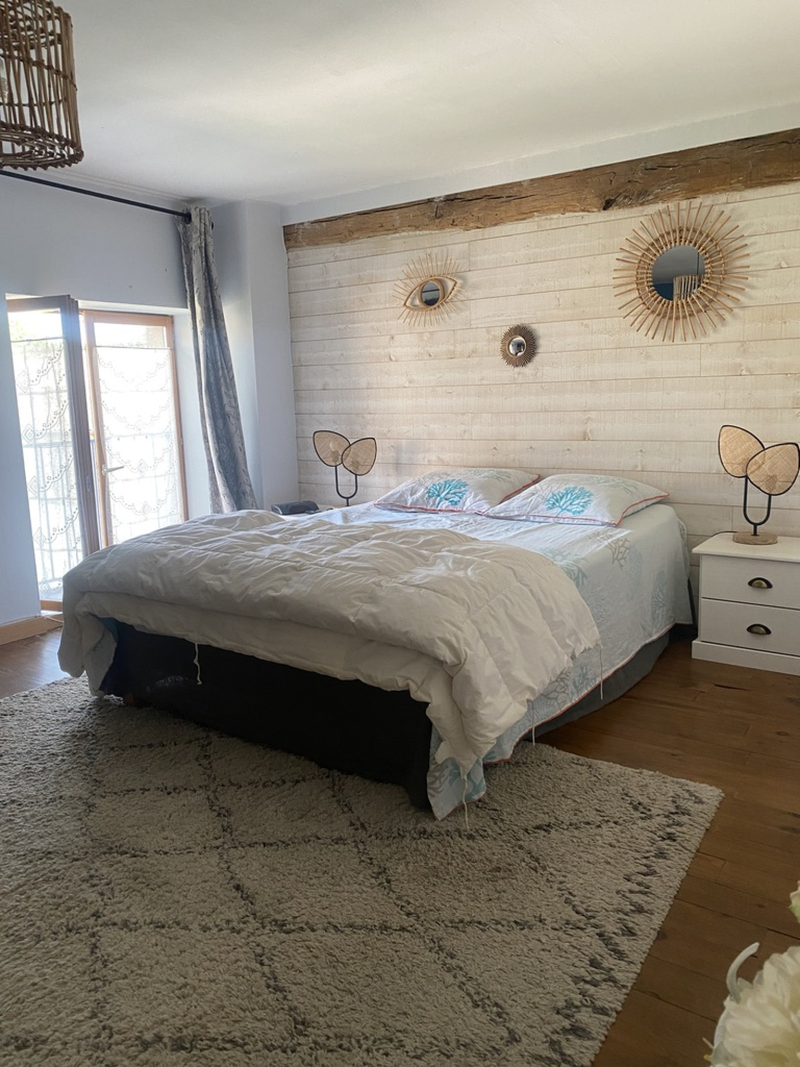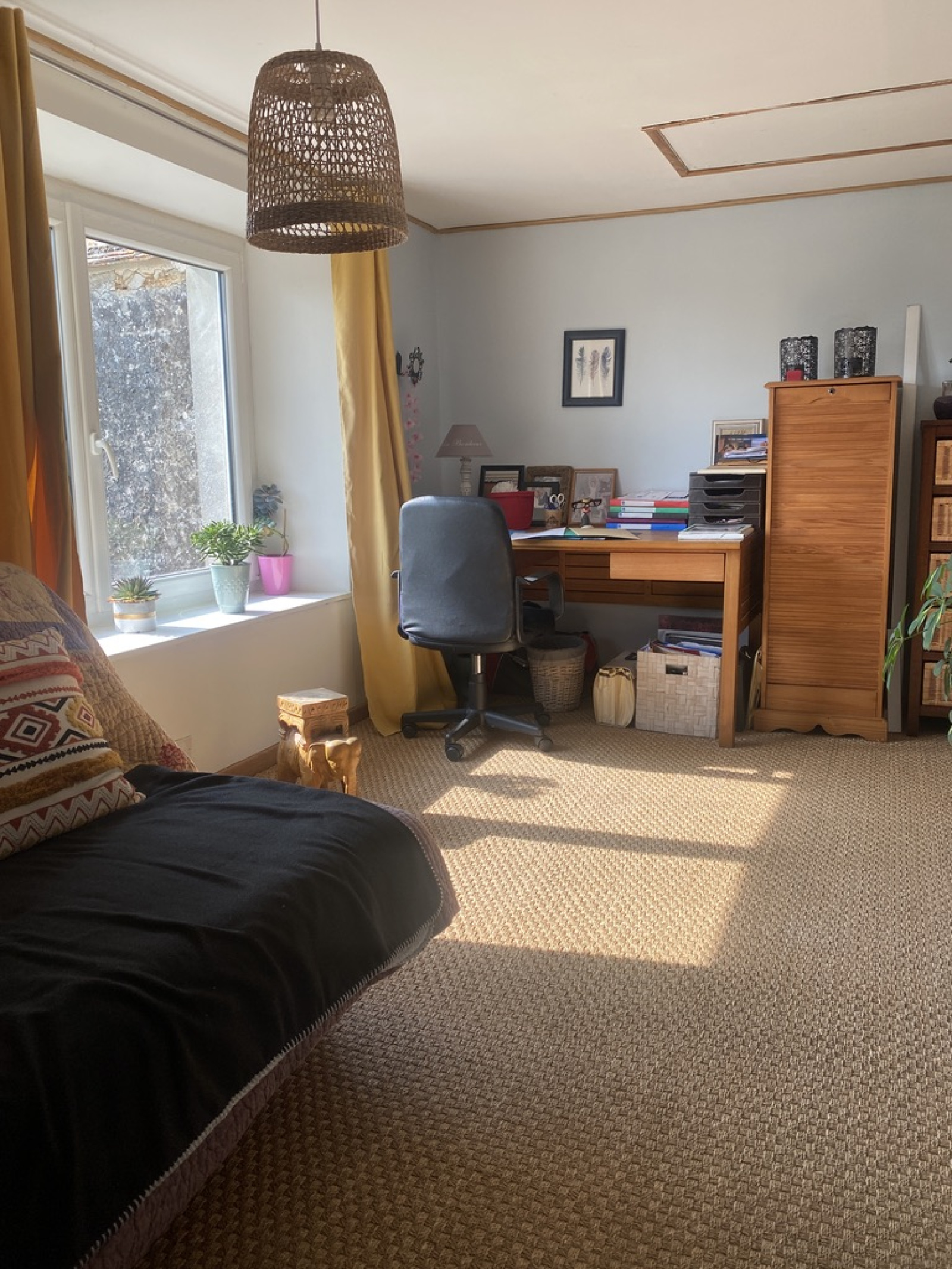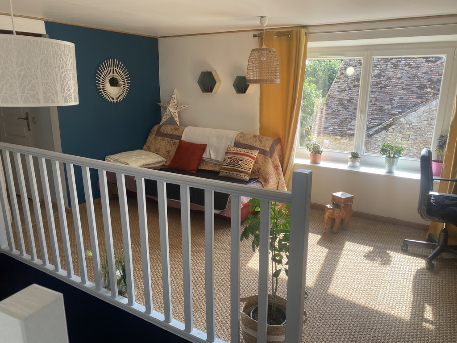 à l'étage, deux grandes chambres vous attendent , ainsi qu'une mezzaninne pouvant servir de couchage d'appoint ou de bureau, une grande salle de bains est à votre disposition