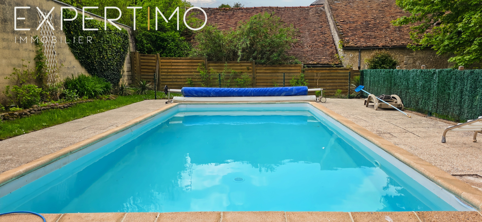 Le jardin clos et paysager dévoile un cadre bucolique propice à la détente. Il accueille une piscine en béton (9 x 4,50 m). L’ensemble est entretenu avec soin, et plusieurs travaux récents viennent valoriser le bien : toiture entièrement restaurée en 2021 par une entreprise locale, huisseries en double vitrage, tableau électrique rénové, chaudière De Dietrich installée en 2018.