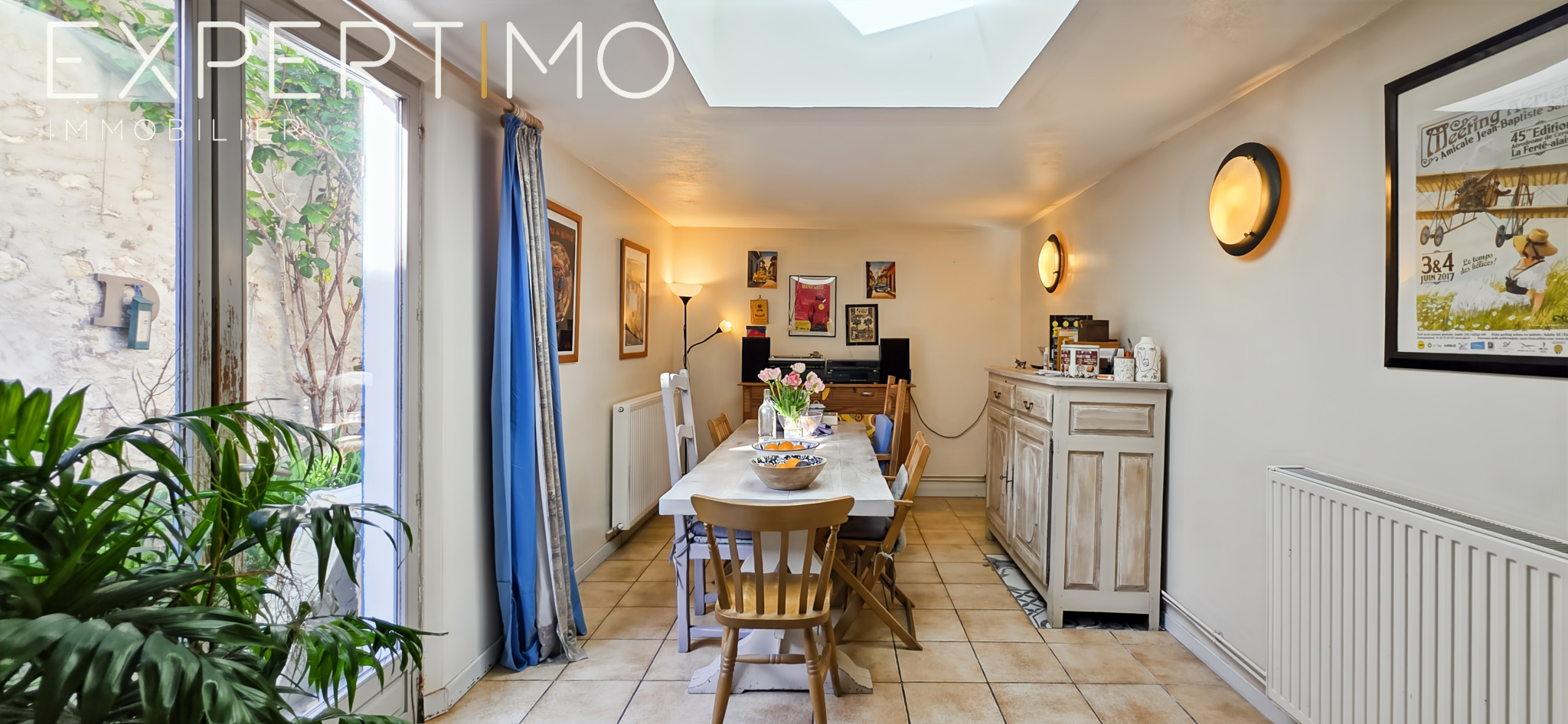 Au rez-de-chaussée, vous découvrirez une belle pièce de vie conviviale, prolongée par une cuisine aménagée et équipée avec accès direct à une cour intimiste, idéale pour profiter des beaux jours en toute tranquillité.