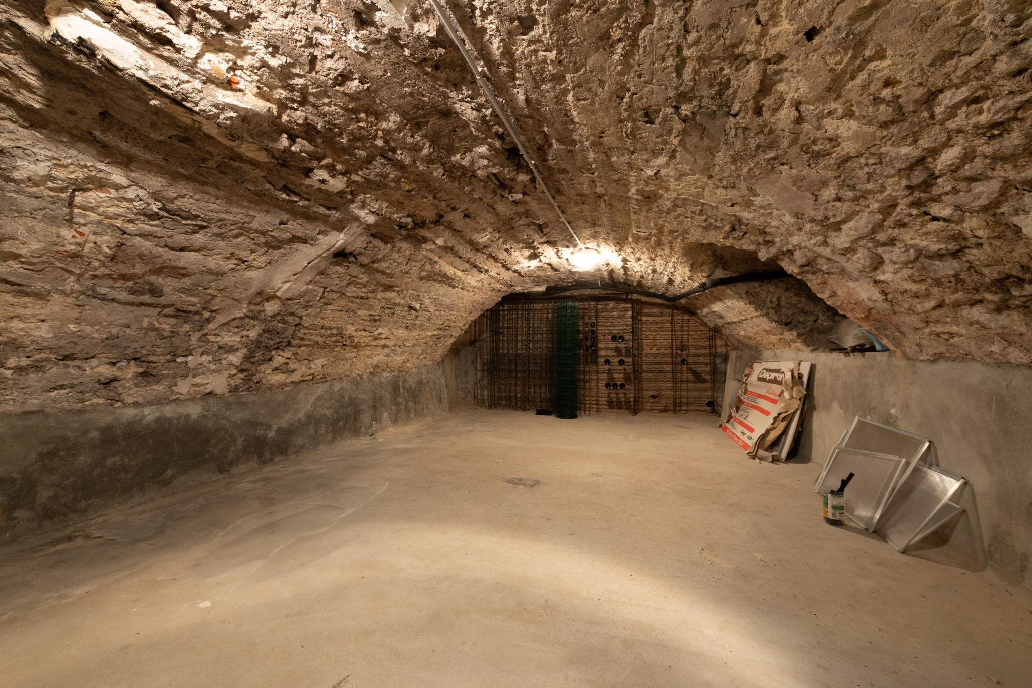 Une grande cave accessible directement depuis l’intérieur ainsi qu’une place de stationnement sécurisée complètent ce bien.