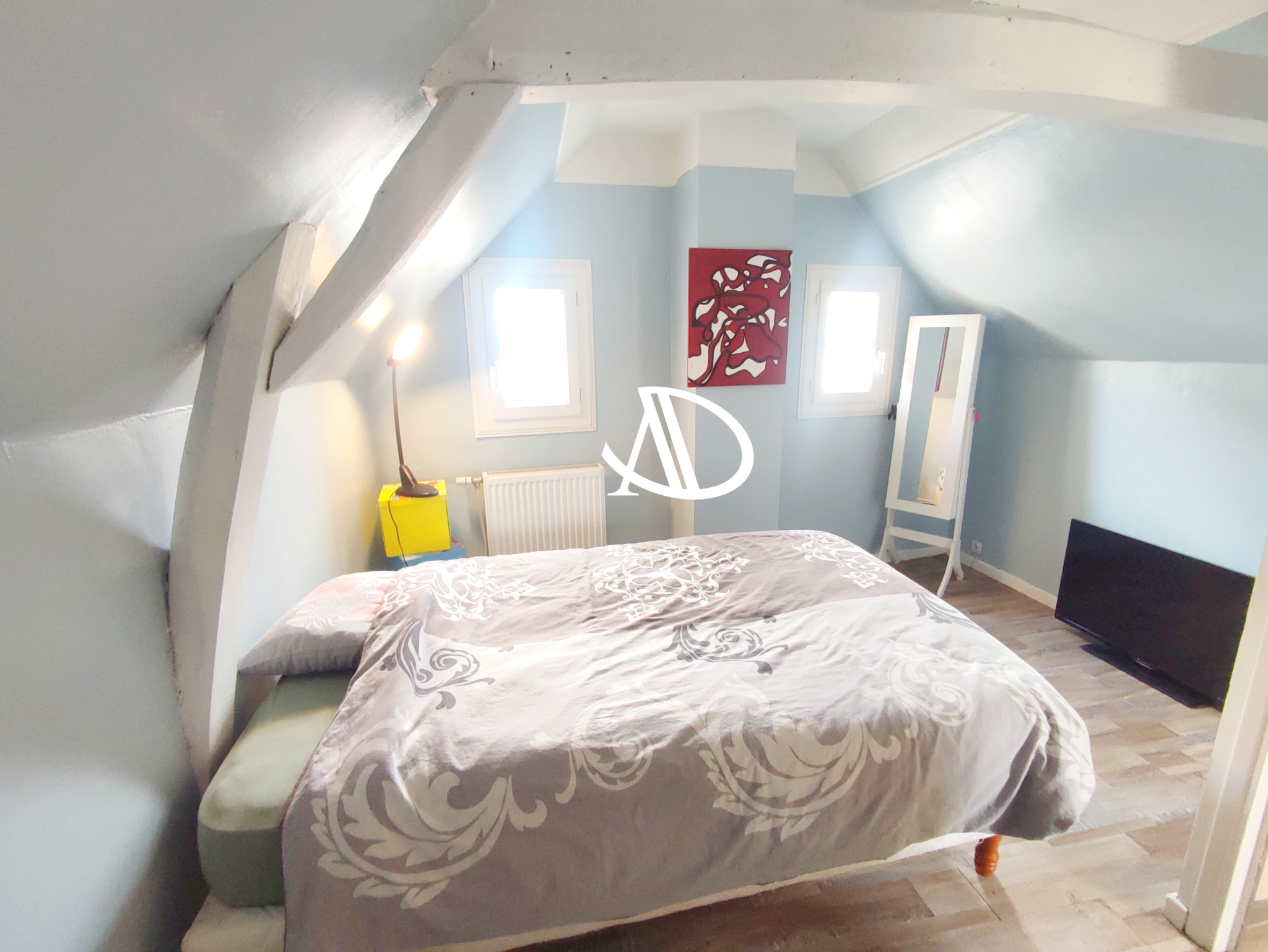 Au rez de chaussée, vous trouverez un joli salon/séjour avec poutres apparentes, une cuisine équipée et aménagée, une grande salle de bains familiale et l'accès à une cave.