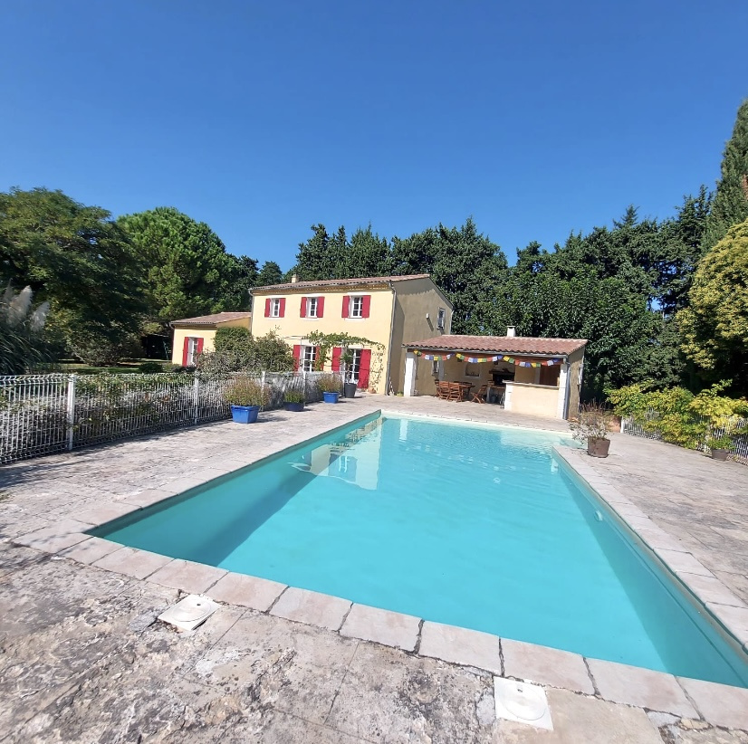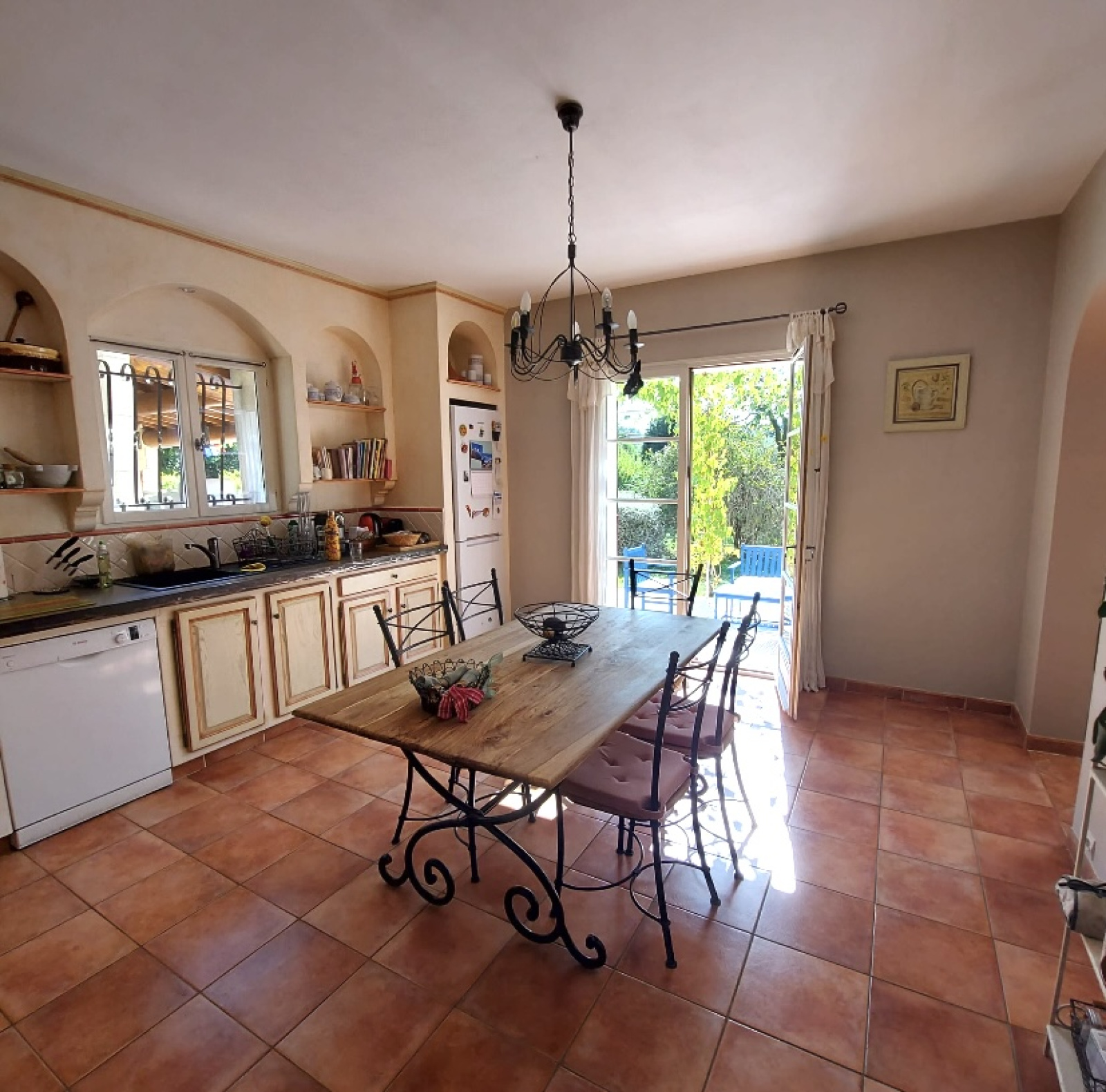 *** SOUS COMPROMIS *** Dans un environnement campagne au calme absolu et sans aucun vis-à -vis, venez découvrir cette belle bastide provençale familliale orientée plein Sud, construction qualitative de 2001, d'une superficie habitable de 180 m², avec garage attenant de 28 m² sur grand terrain arboré et paysagé de 4800 m². Vous profiterez d'une belle terrasse avec piscine traditionnelle de 10x5 et pool-house avec cuisine d'été, douche et w.c ainsi qu'un espace détente couvert.