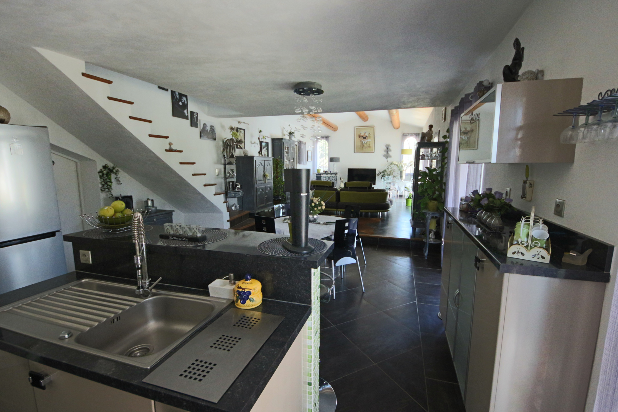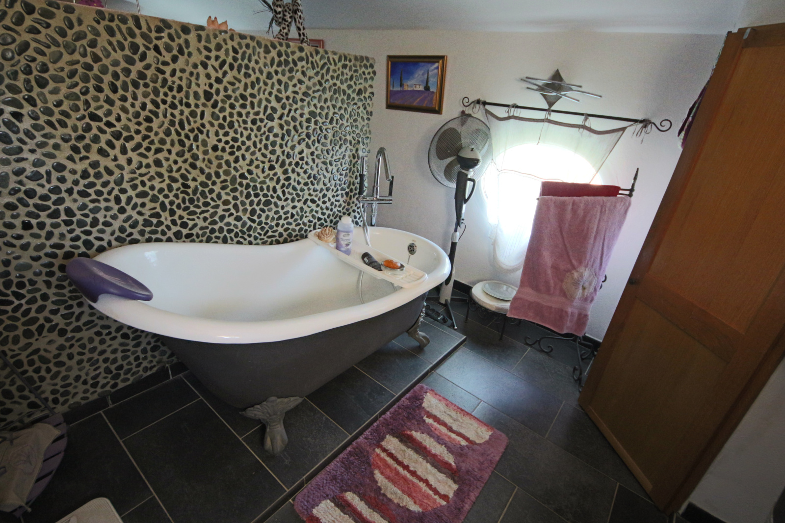Elle offre au rez-de-chaussée une grande pièce de vie avec cuisine ouverte de 70 m2, une chambre avec salle d'eau, un bureau en mezzanine et un w.c. indépendant, de nombreux rangements. L'étage comprend une très grande suite parentale avec salle de bains et w.c. de 32 m2. Grande terrasse avec pergola au-devant, 2 annexes pour rangement - Beau jardin paysagé. Terrain piscinable.Fosse aux normes.