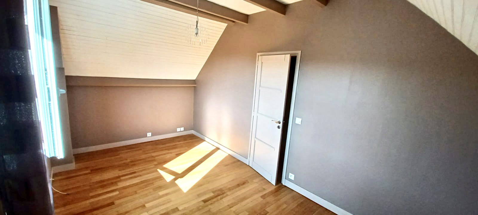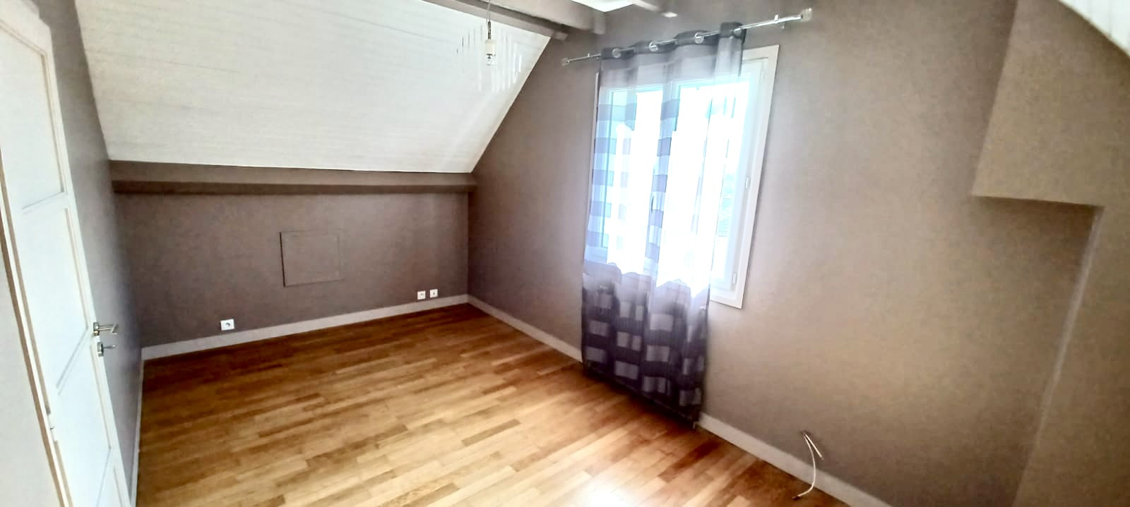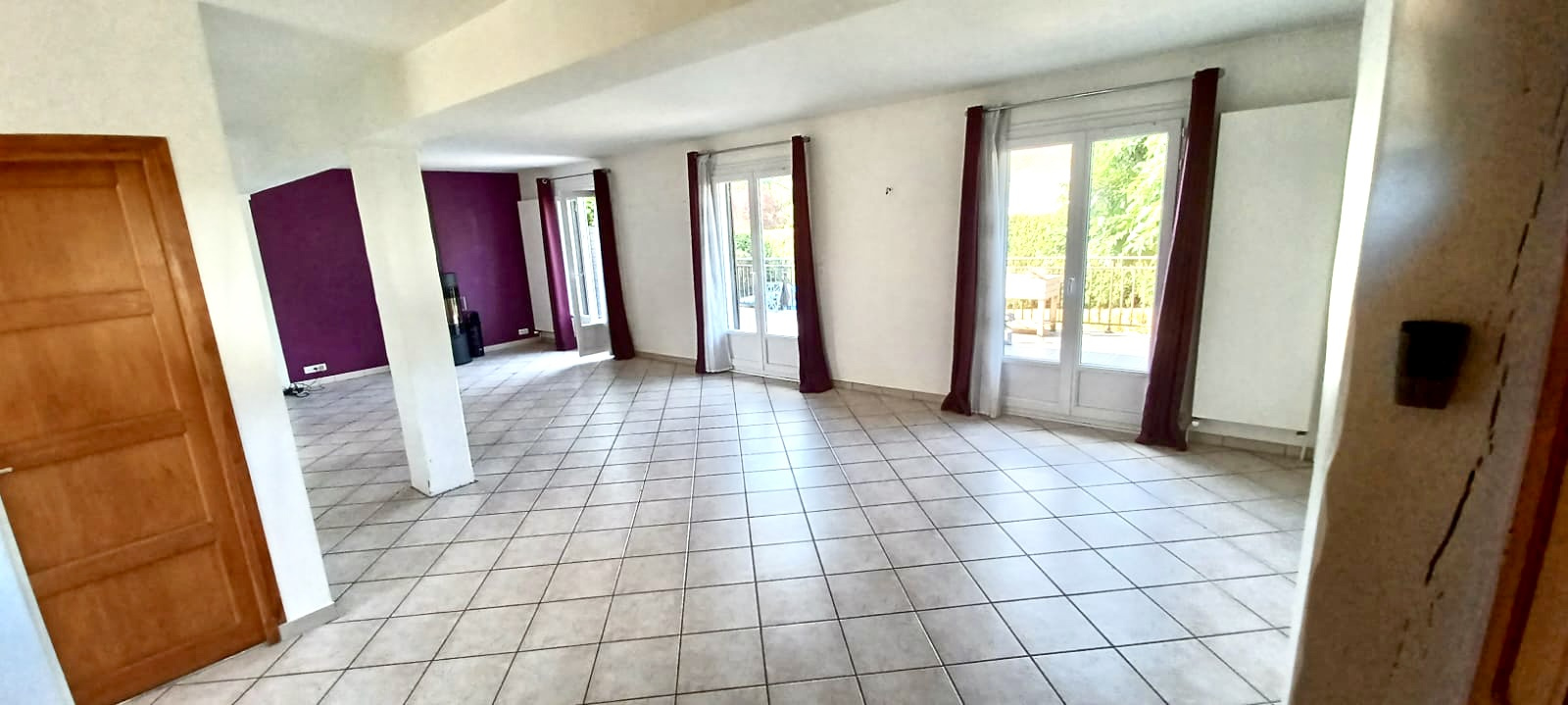 Quartier du Roussay, venez découvrir cette maison individuelle sur sous sol total et sur plus de 600m² de terrain comprenant : entrée sur vaste salon séjour avec poêle donnant sur la terrasse, cuisine aménagée équipée, salle d'eau WC. A l'étage 3 chambres, un bureau, WC. Sous sol total avec chaufferie, buanderie et pièces de rangement. Terrain exposé sud avec grande terrasse carrelée et piscine hors sol. Maison proche écoles, commerces, à 8 minutes en bus du RER C.