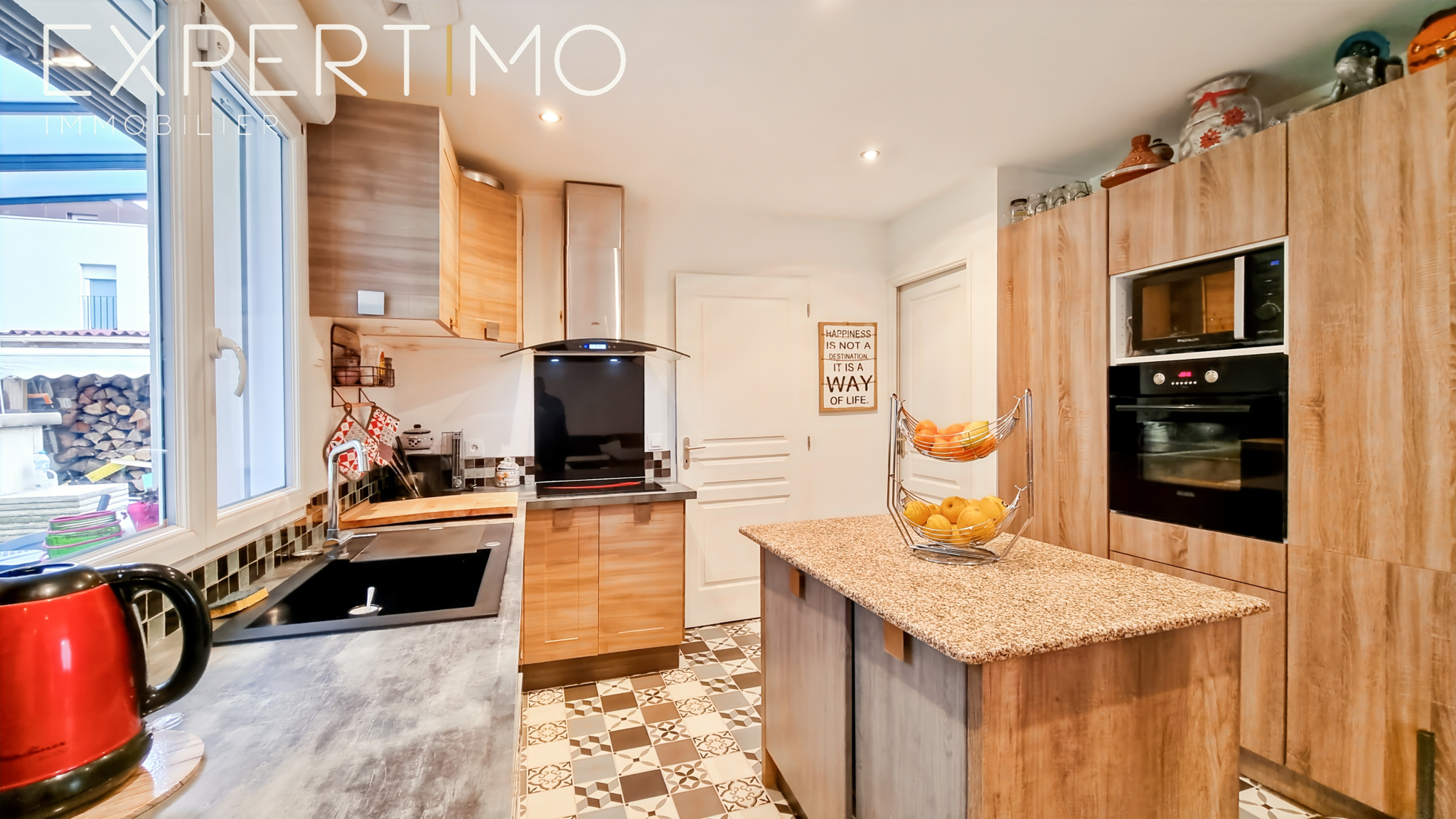 Cuisine ouverte, aménagée et fonctionnelle, complétée par une buanderie.