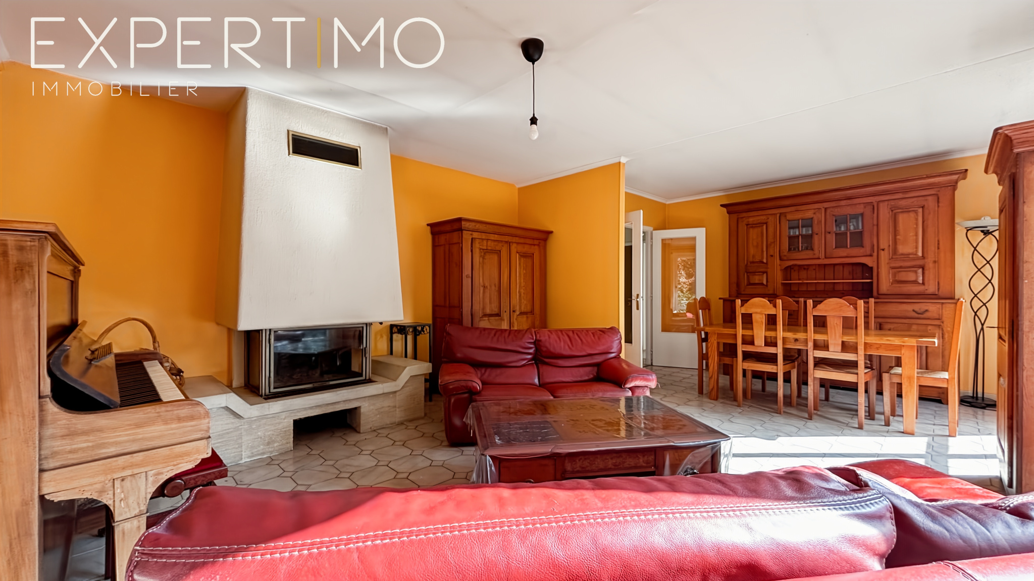 Le double séjour lumineux avec cheminée ouvre sur une terrasse de 20 m² sans vis-à -vis, idéale pour profiter des beaux jours.