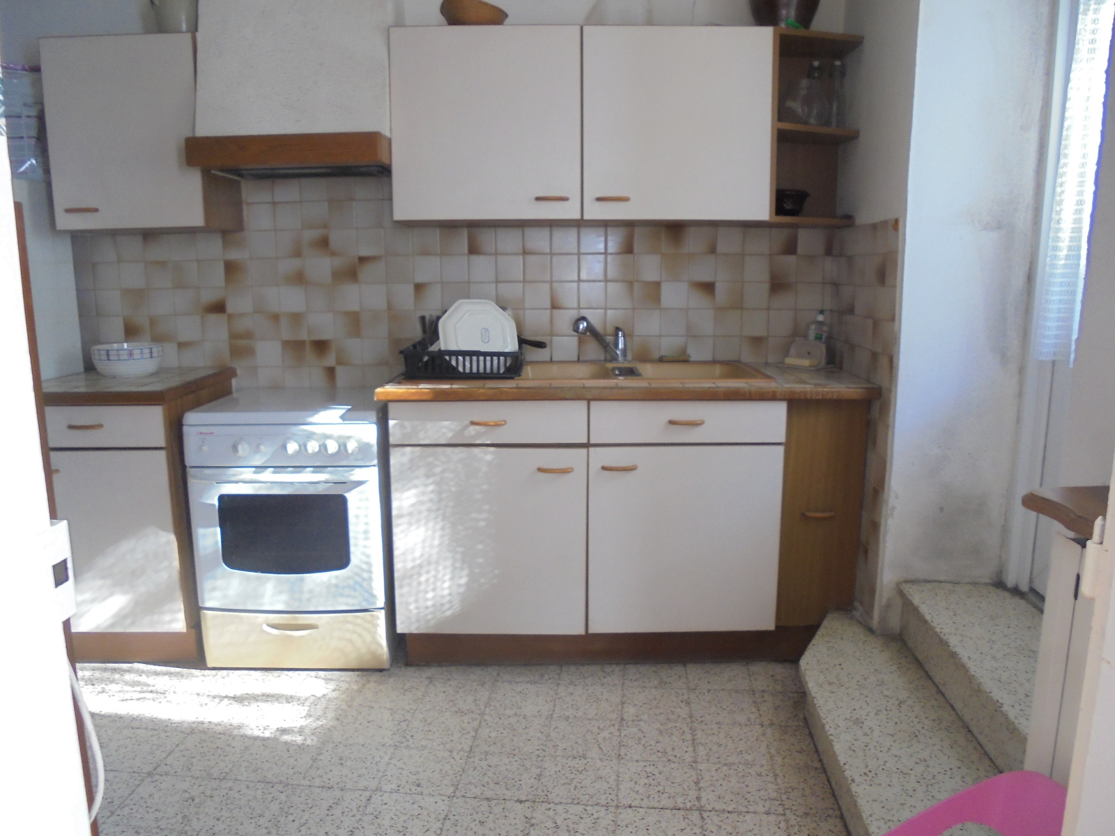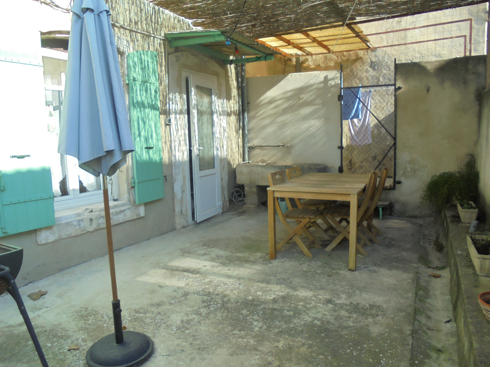 ***VENDU*** -Eyragues - Maison de village années 1800 de 100 m2 avec bel extérieur (terrasse de 26 m2) et garage. Elle comprend au rez-de-chaussée : un espace de vie avec cuisine séparée qui ouvre sur une belle terrasse exposition plein Sud et une salle d'eau avec w.c. ; l'étage comprend deux grandes chambres (27 m2 et 17 m2), un palier et un dégagement - possibilité 3ème chambre et salle d'eau. Des travaux sont à prévoir - toiture et façade en bon état.