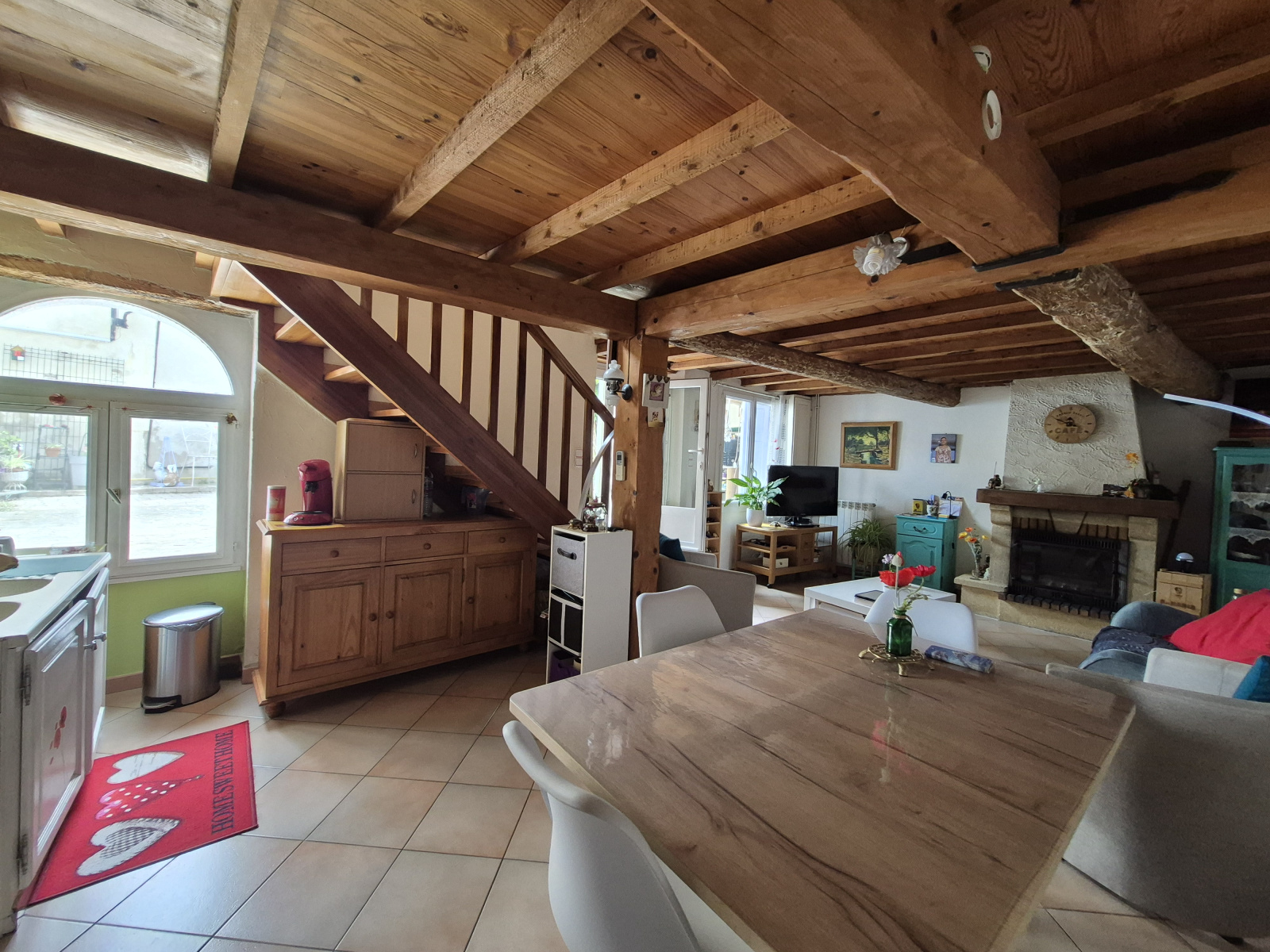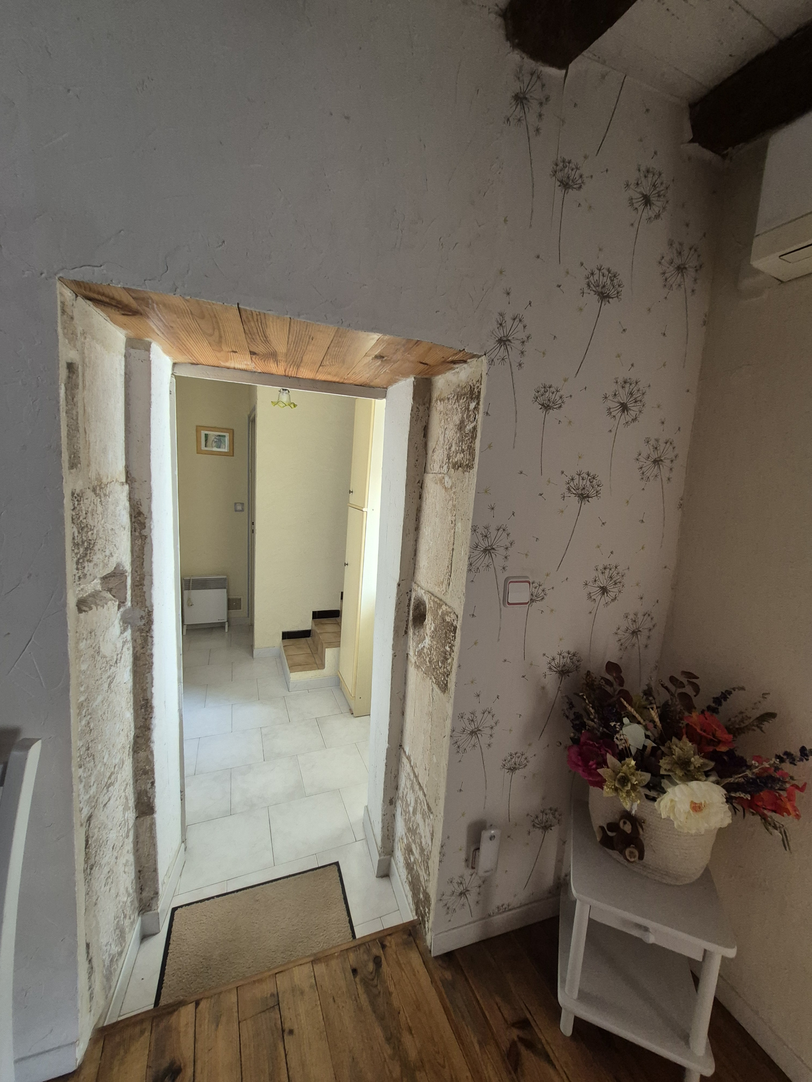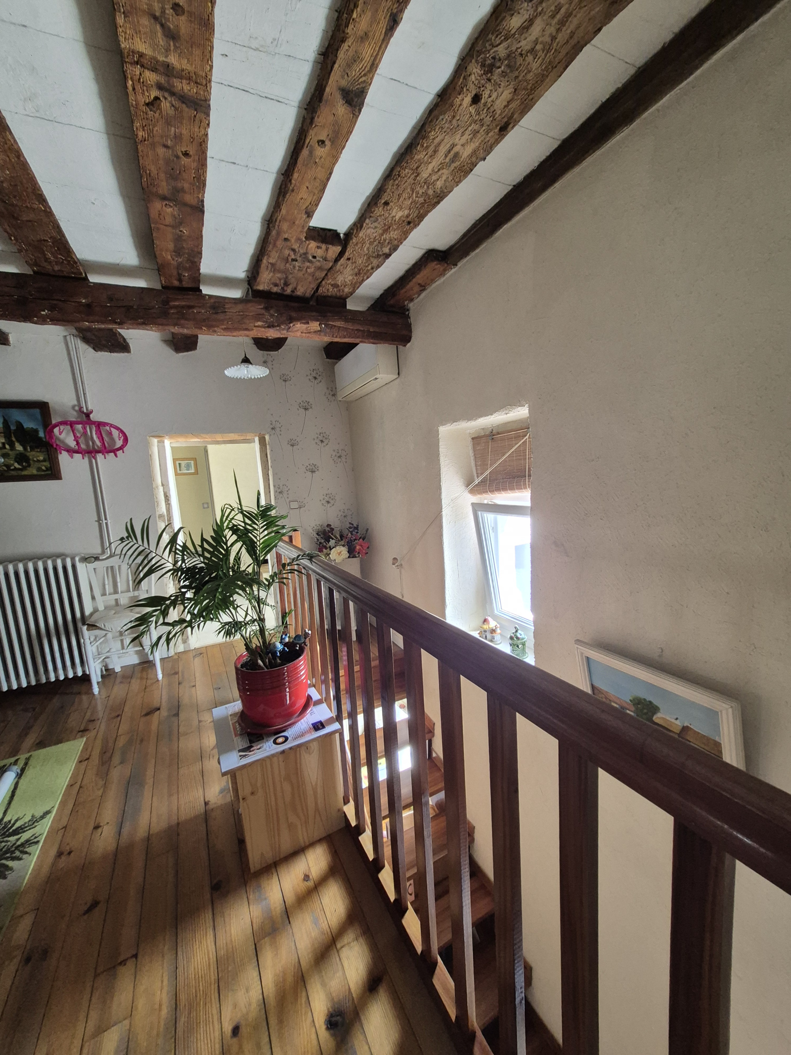 Prestations : 3 climatisations réversibles, une cheminée avec insert, menuiseries PVC double vitrage, volets bois, eau de ville + forage, tout à l'égout, pierres, poutres.