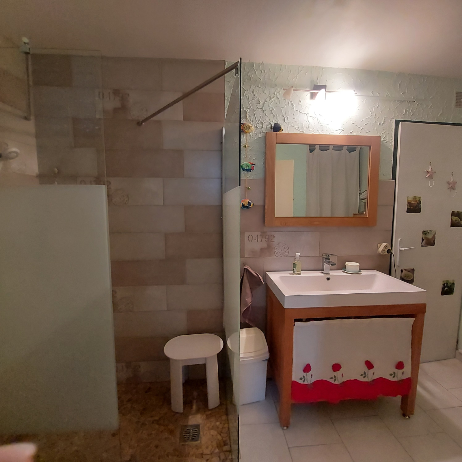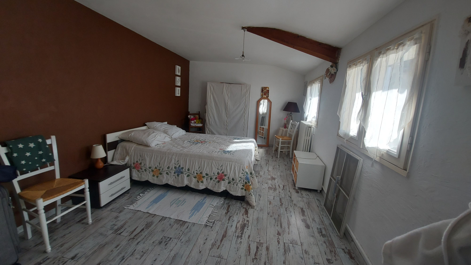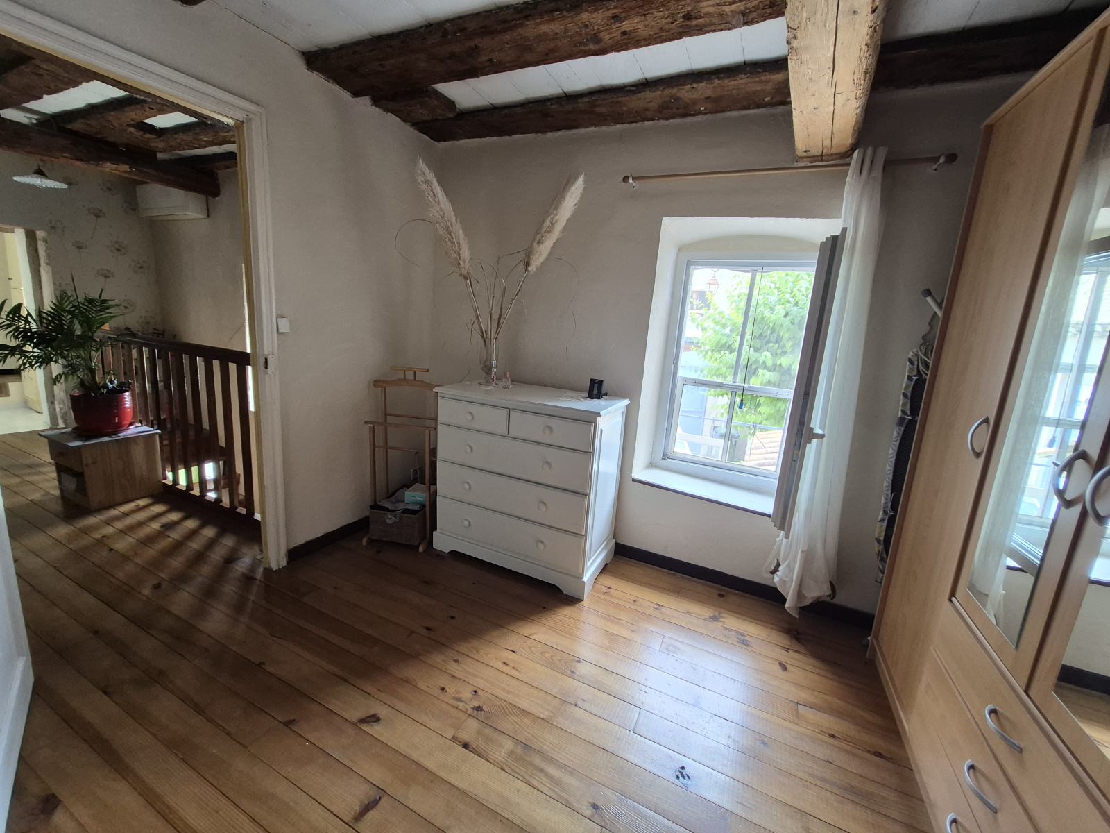 Prestations : 3 climatisations réversibles, une cheminée avec insert, menuiseries PVC double vitrage, volets bois, eau de ville + forage, tout à l'égout, pierres, poutres.