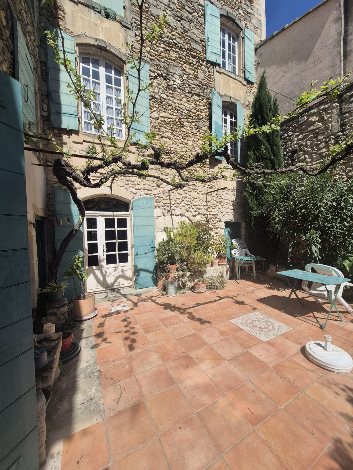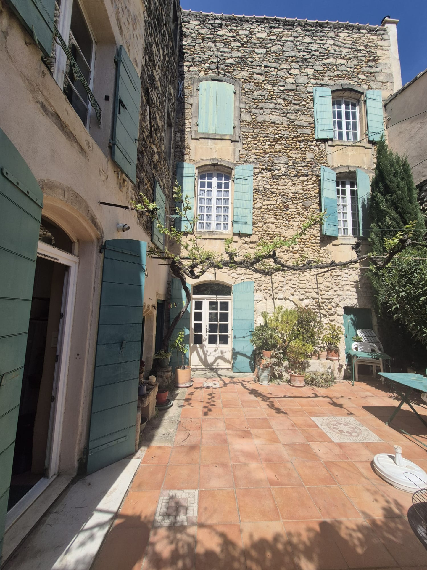 A Eyragues, Grande maison familiale ancienne en pierres, d'une superficie de 200 m2, située en coeur de village dans rue très calme, avec belle cour intimiste façon "Hacienda". Ses volumes généreux vous séduirons, le charme opère dès l'entrée ! (tommettes anciennes, parquet bois, cage d'escaliers en pierre...). Certes, des travaux sont à réaliser mais la toiture a été refaite et les façades sont en bon état. Eau de ville + tout à l'égout - Moyen de chauffage par chaudière gaz de ville. La cour exposition plein Sud bénéficie d'un bel ensoleillement et vous permettra de fabuleux moments de quiétude! Emplacement idéal ! A 10 min de Saint-Rémy-de-Provence, à 17 min de la Gare TGV Avignon.