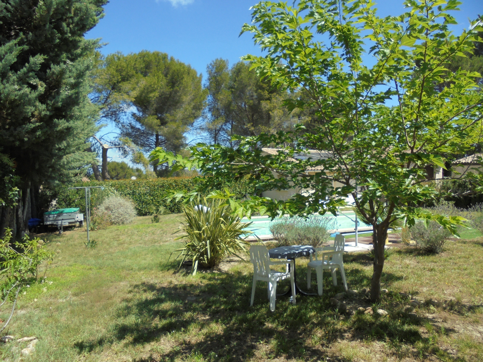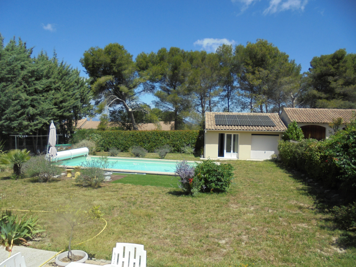 *** VENDU ***A Eyragues, en position dominante avec vue dégagée, venez découvrir cette belle maison de plain-pied de 91 m2, comprenant une entrée, une pièce de vie, une cuisine séparée, une buanderie, deux belles chambres avec placards, une salle d'eau et un w.c. indépendant + un garage attenant de 21 m2, l'ensemble sur beau terrain de 1000 m2 entièrement clôturé et arboré. Vue dégagée ! sans aucun vis-à -vis ! Une belle piscine récente de 8x4 vient compléter ce bel ensemble ainsi qu'une dépendance de 35 m2 avec toilettes et salle d'eau + atelier. Gros potentiel pour cette maison qui peut encore développer de la surface utile. Proche des axes principaux gare TGV Avignon et A7 et à 8 min de Saint-Rémy de Provence.
