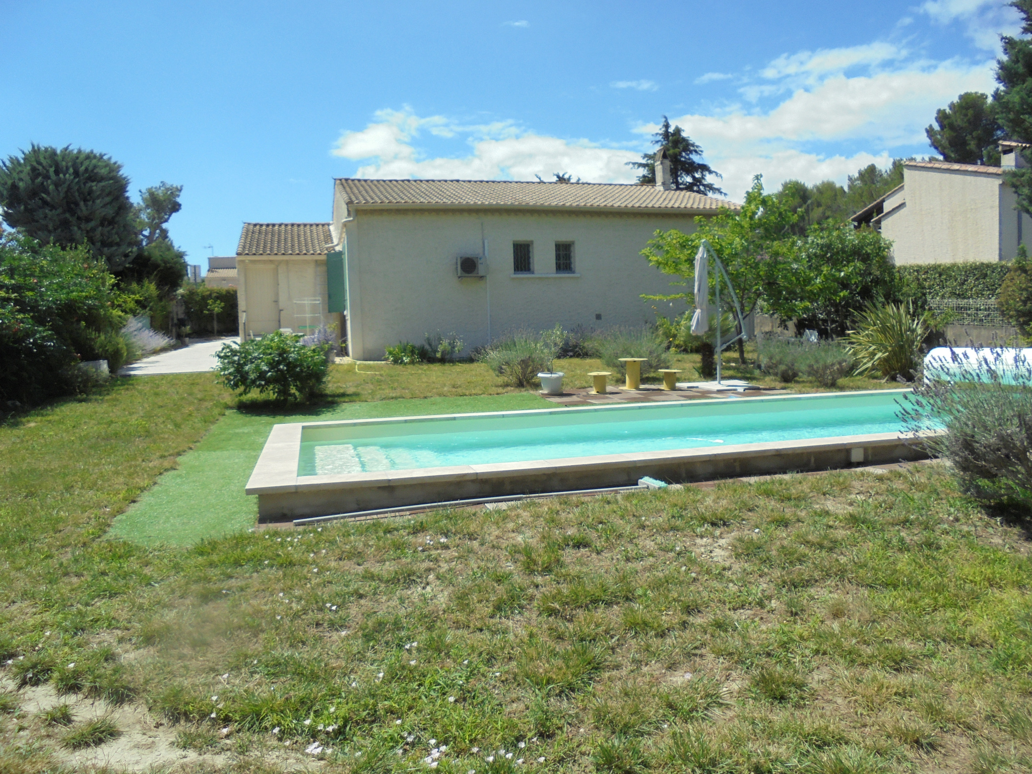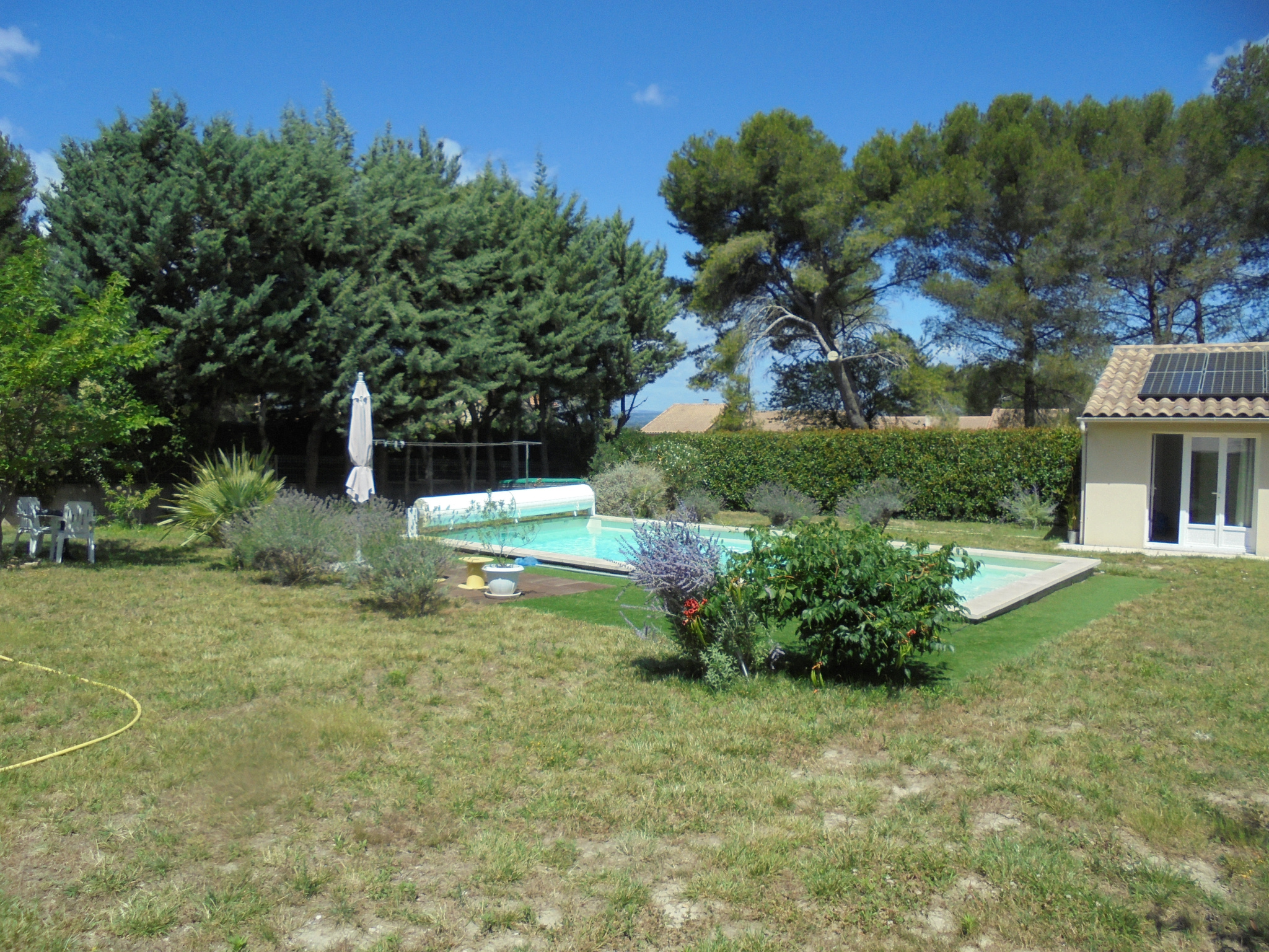 Prestations : menuiseries PVC double vitrage récentes, 2 climatisations réversibles neuves, cheminée avec insert, panneaux photovoltaïques en autoconsommation avec rentabilité de 1800 €/an, belle piscine au sel avec volet roulant.