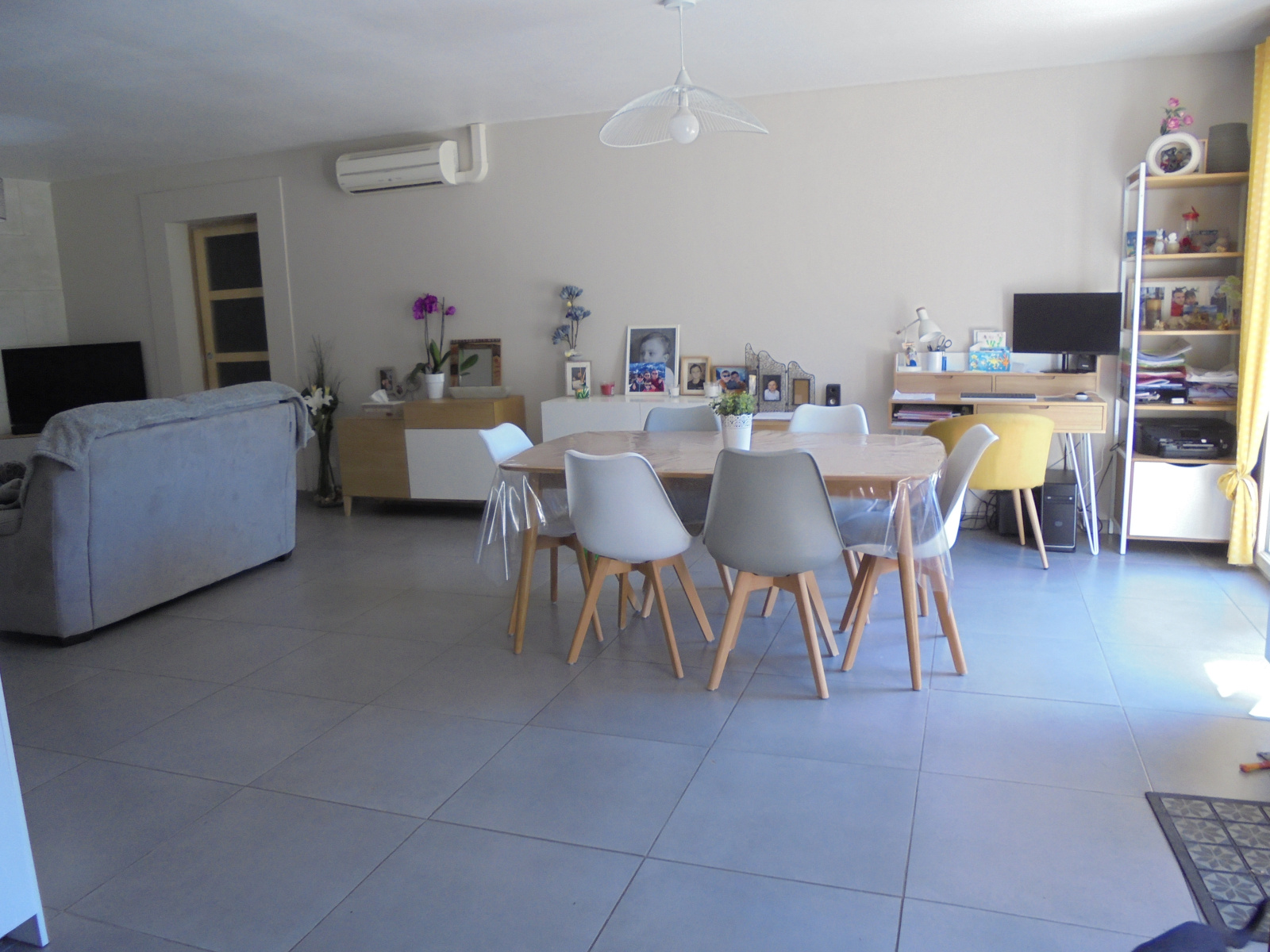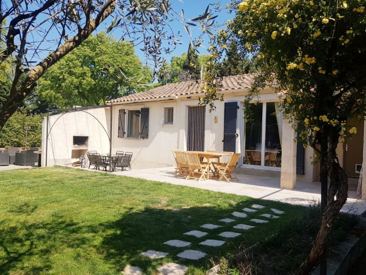 *** VENDU *** EXCLUSIVITE - Eyragues, proche du centre, maison de plain-pied de 95 m2 avec garage, hors lotissement, sans aucun vis-à -vis. Elle offre une belle pièce de vie avec cuisine entièrement équipée de 44 m2, trois chambres, un grand dressing indépendant, une salle d'eau, un w.c.,une buanderie et un garage de 20 m2, l'ensemble sur un terrain paysagé et clôturé de 600 m2.