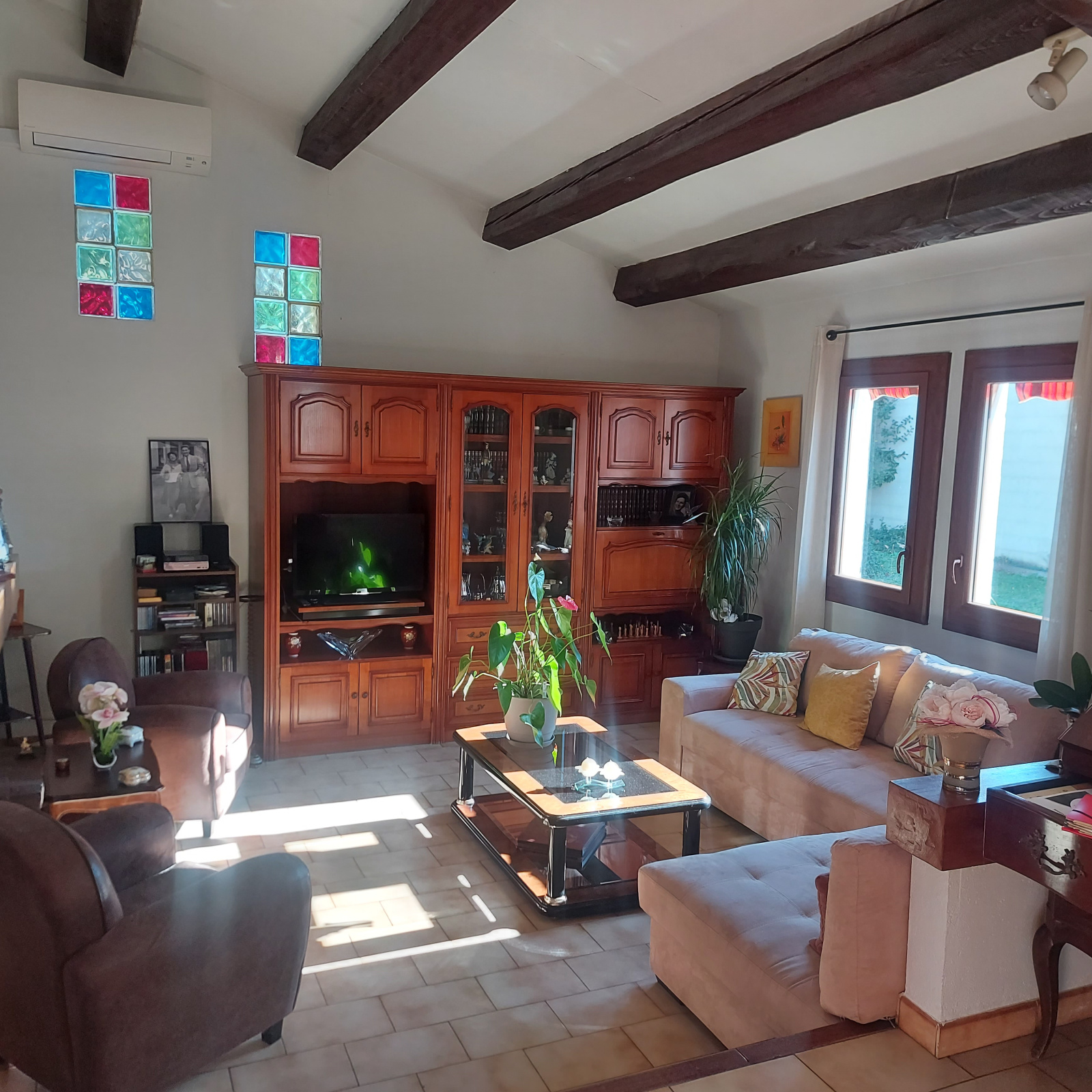 Prestations : panneaux photovoltaïques, menuiseries PVC double vitrage avec volets en PVC et bois, système de chauffage gainable par pompe à chaleur, cheminée, eau de ville + tout à l'égout + eau du canal pour arrosage.
