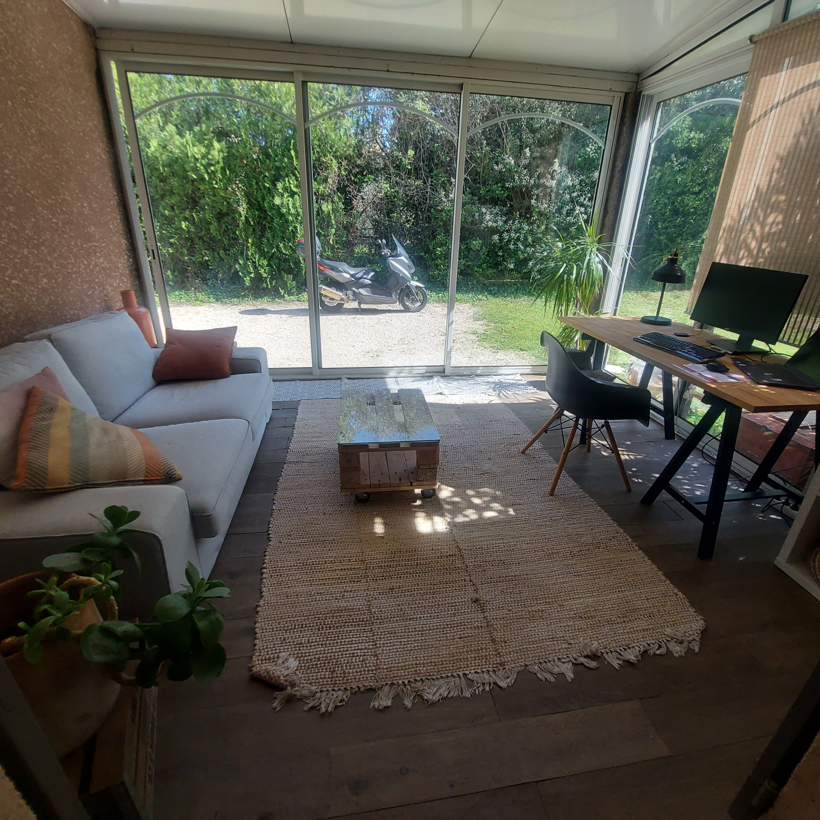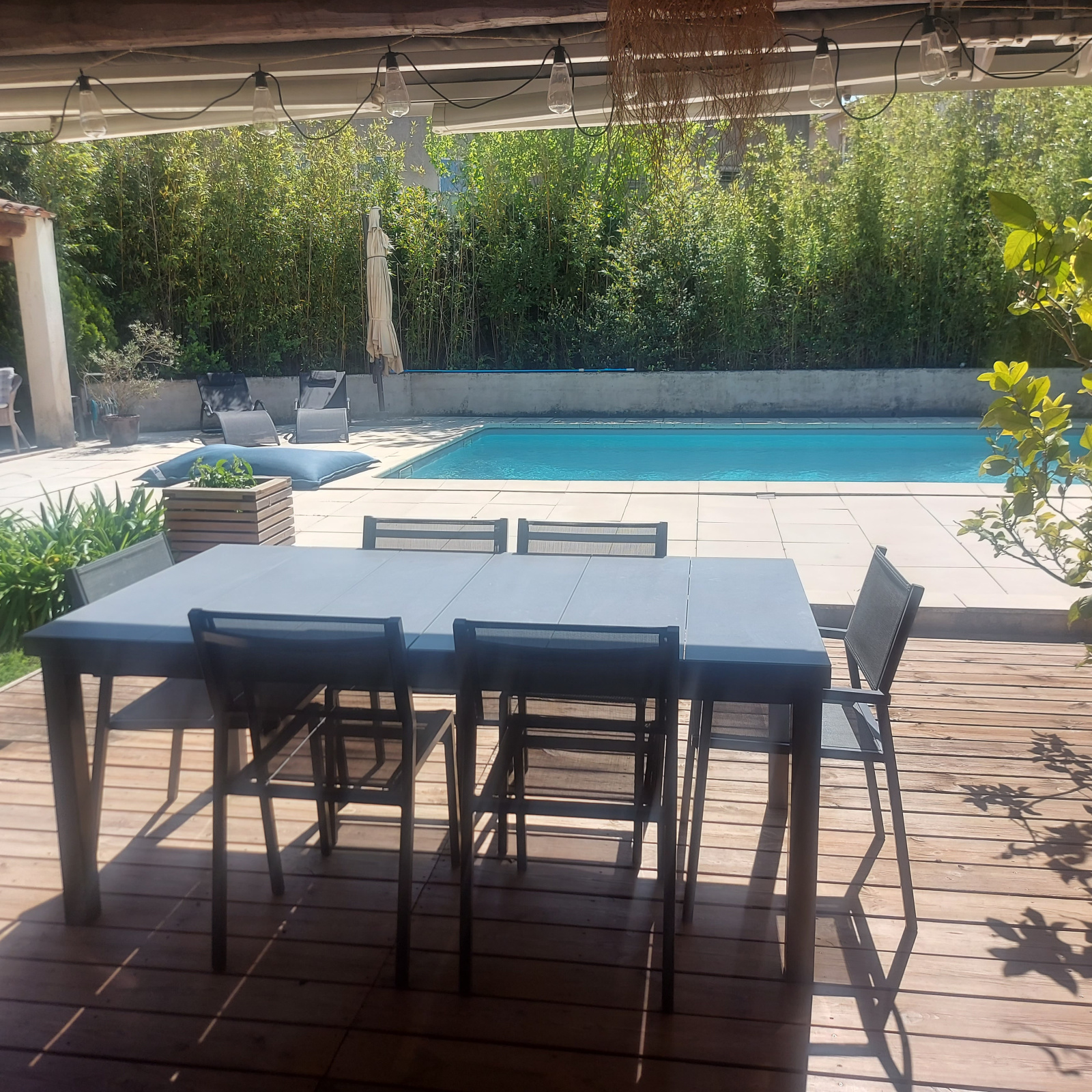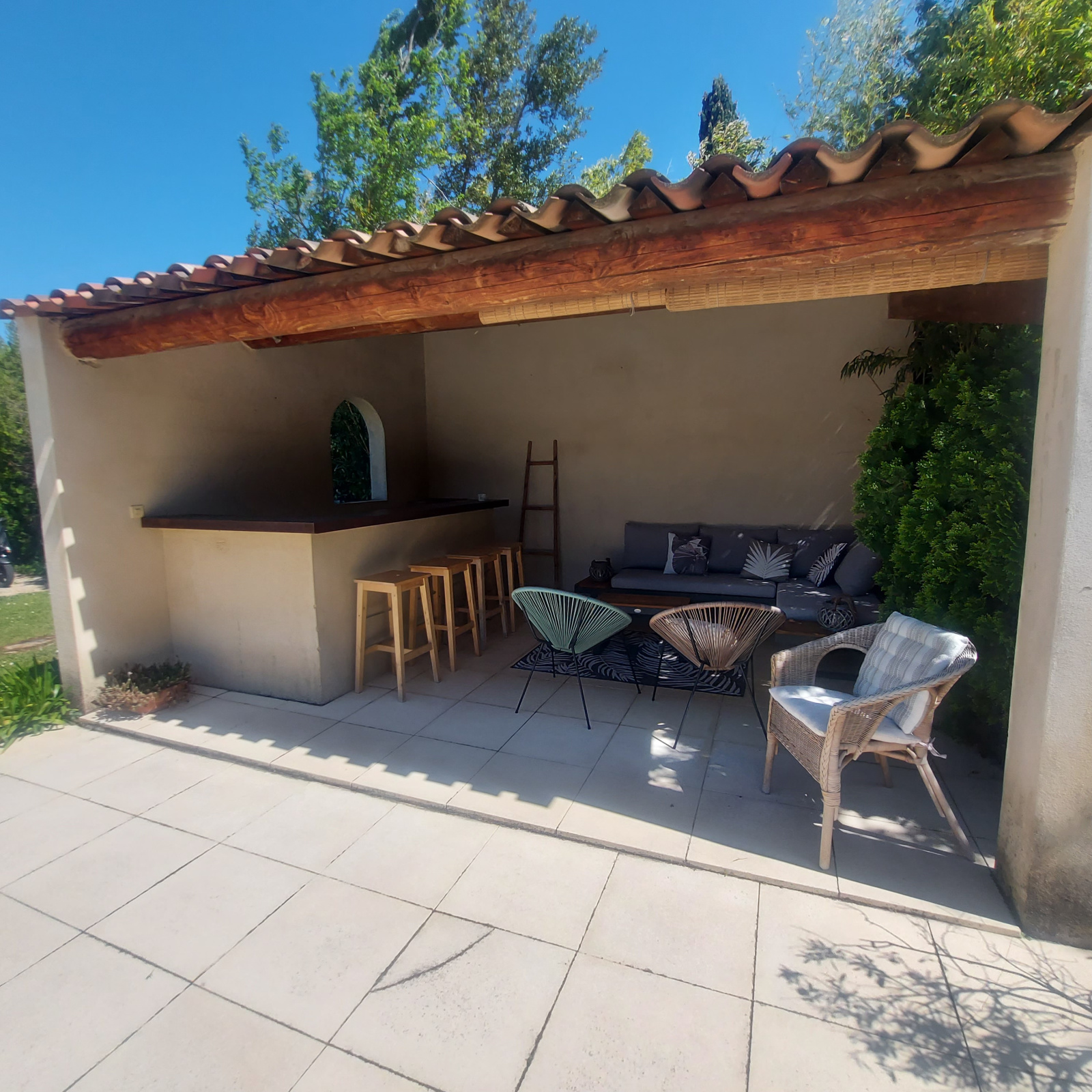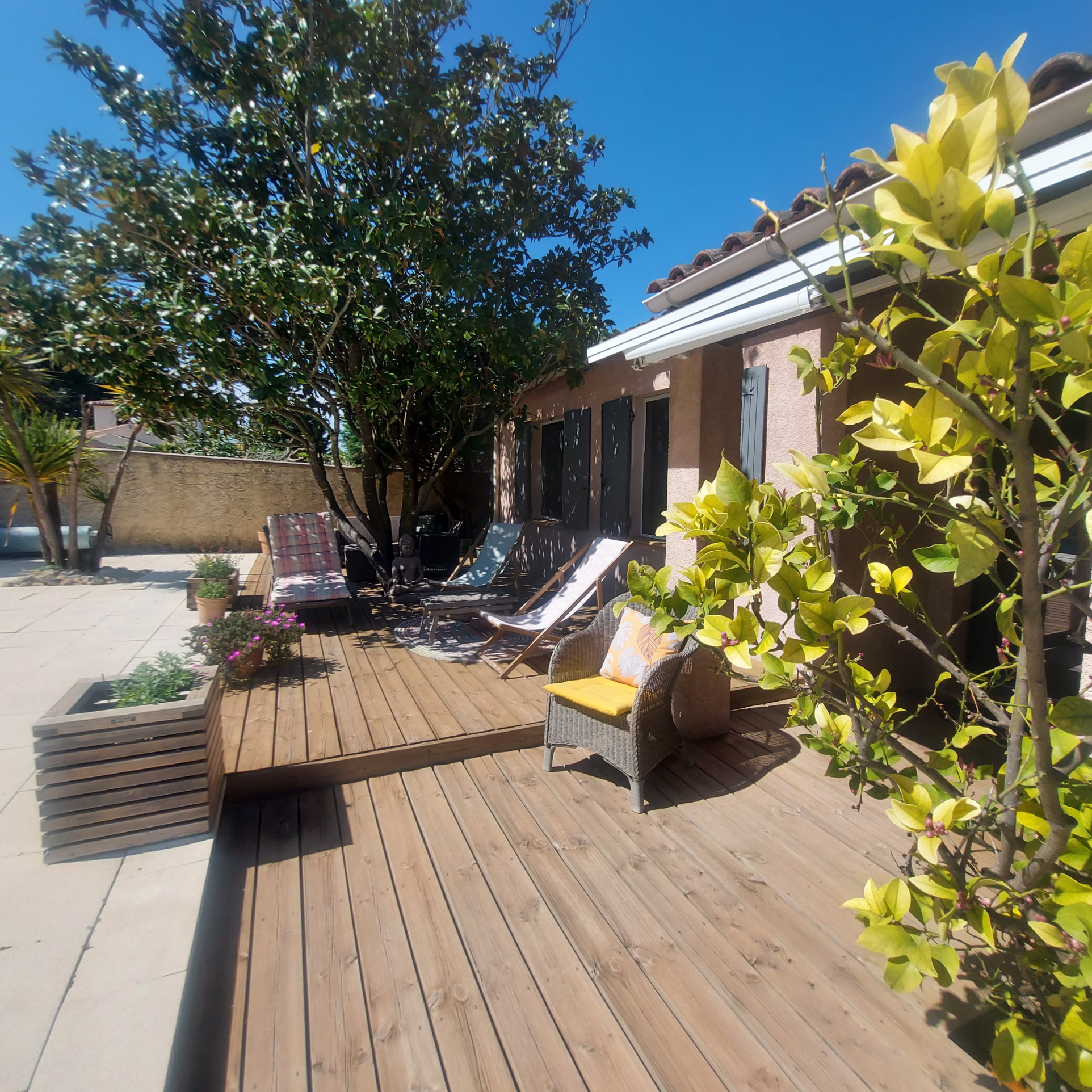 *** VENDU *** Exclusivité à Eyragues, maison de plain-pied année 1990, à venir découvrir absolument ! Plusieurs points forts : à pied du centre du village dans quartier calme, sans vis-à -vis ! orientation plein Sud, d'une superficie habitable de 120 m2, édifiée sur un beau terrain paysagé de 1100 m2. Elle comprend une vaste pièce de vie avec cuisine équipée ouverte de 46 m2, une pièce bureau de 13 m2 (pouvant permettre d'agrandir le salon), une buanderie, trois chambres, une salle d'eau, un w.c. indépendant et une pièce annexe attenante pouvant faire office de dépendance ou 4ème chambre avec point d'eau et toilettes. Le jardin est paysagé avec une belle piscine de 10x5 et grande terrasse en bois. Un pool-house aménagé en cuisine d'été vient compléter ce bel ensemble très cocooning.