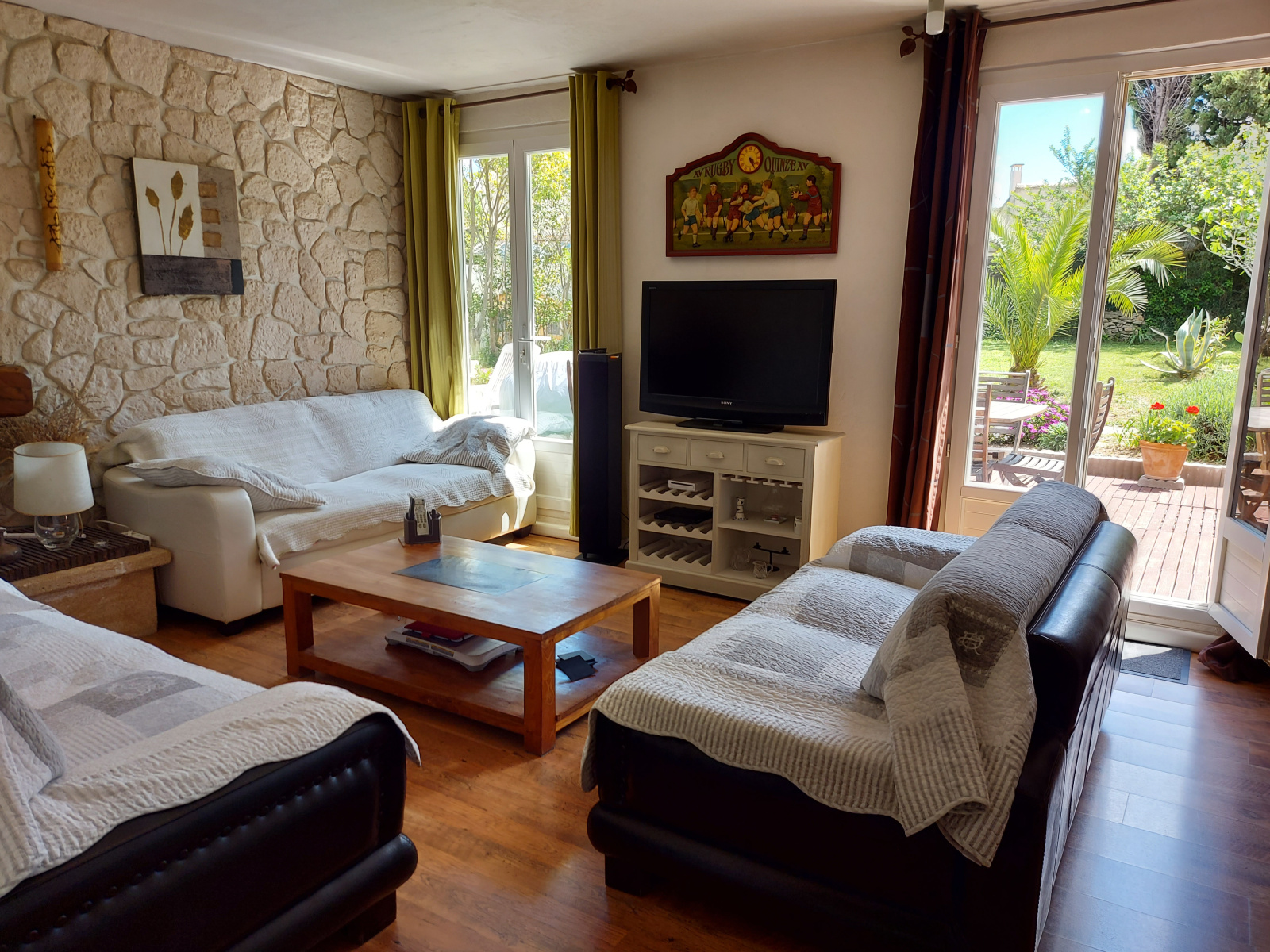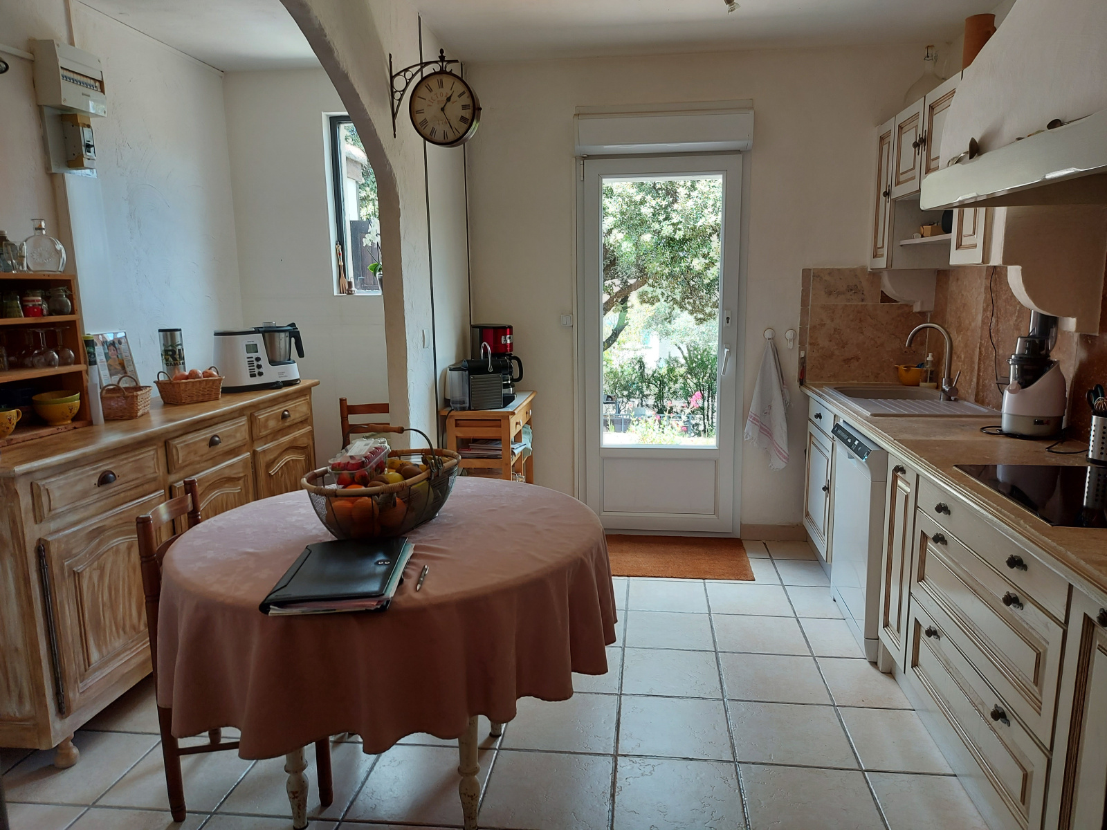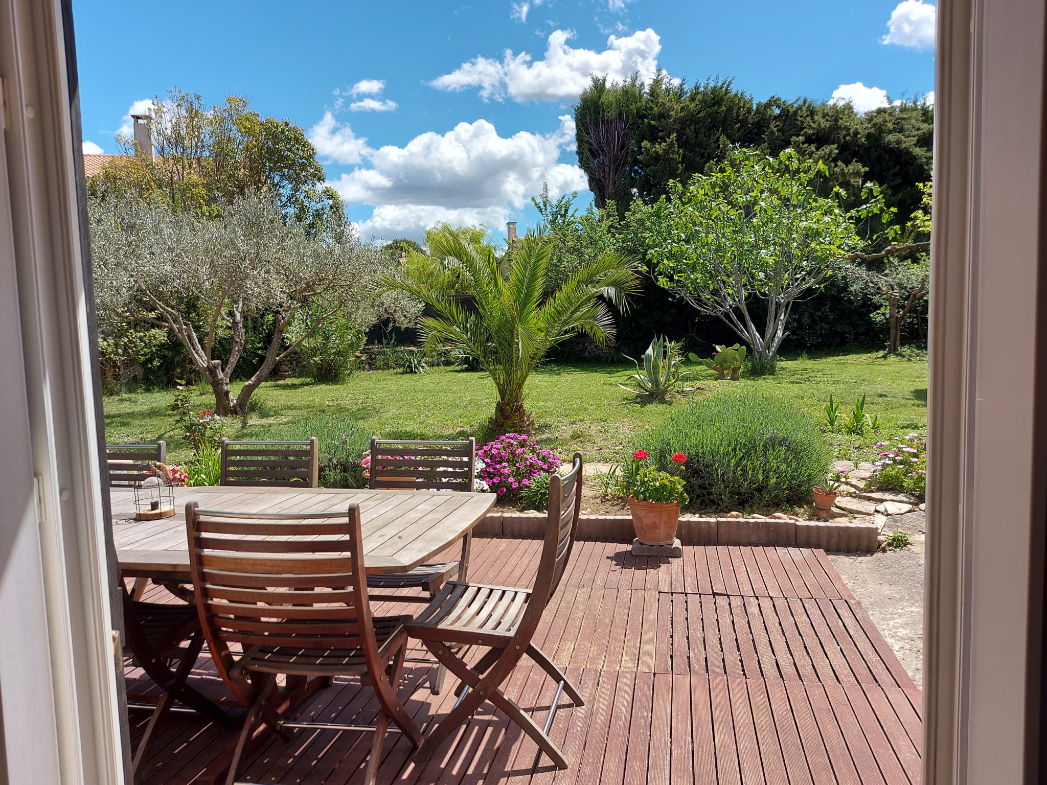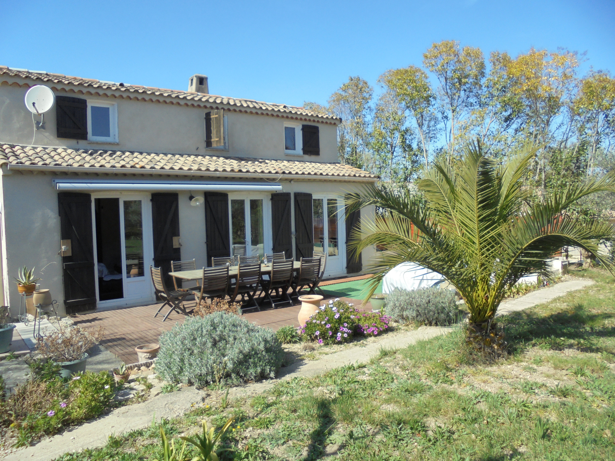 *** VENDU *** Exclusivité à Eyragues, en position dominante et au calme, jolie maison exposition plein Sud de 130 m2 sur beau terrain paysagé de 890 m2 comprenant trois chambres (possibilité 4), salle de séjour, salon, cuisine séparée, buanderie, salle d'eaau, w.c. et un garage attenant de 14 m2, terrain pisicinable.