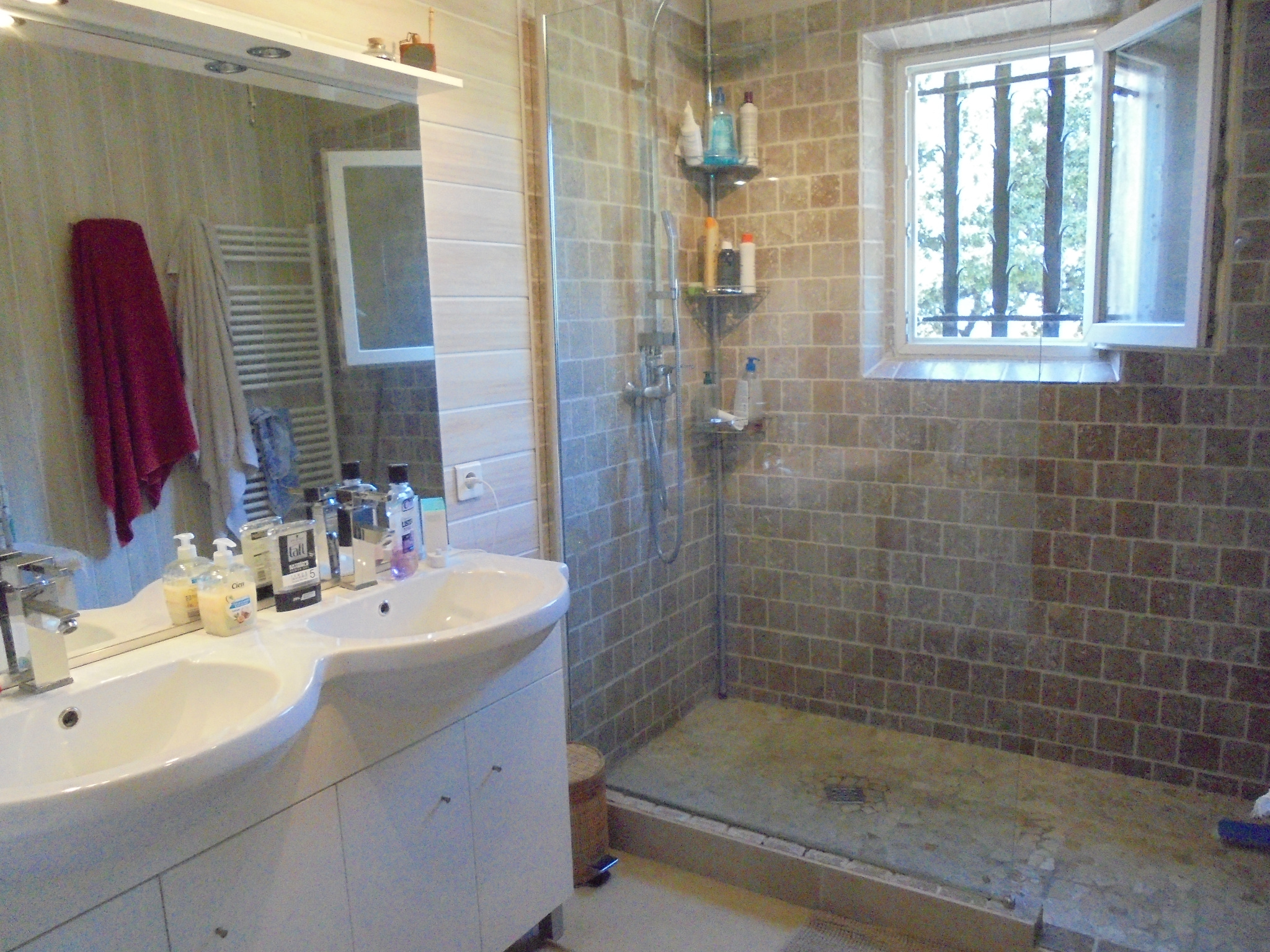 Prestations : menuiseries PVC double vitrage, poêle à granules, climatisation réversible.
