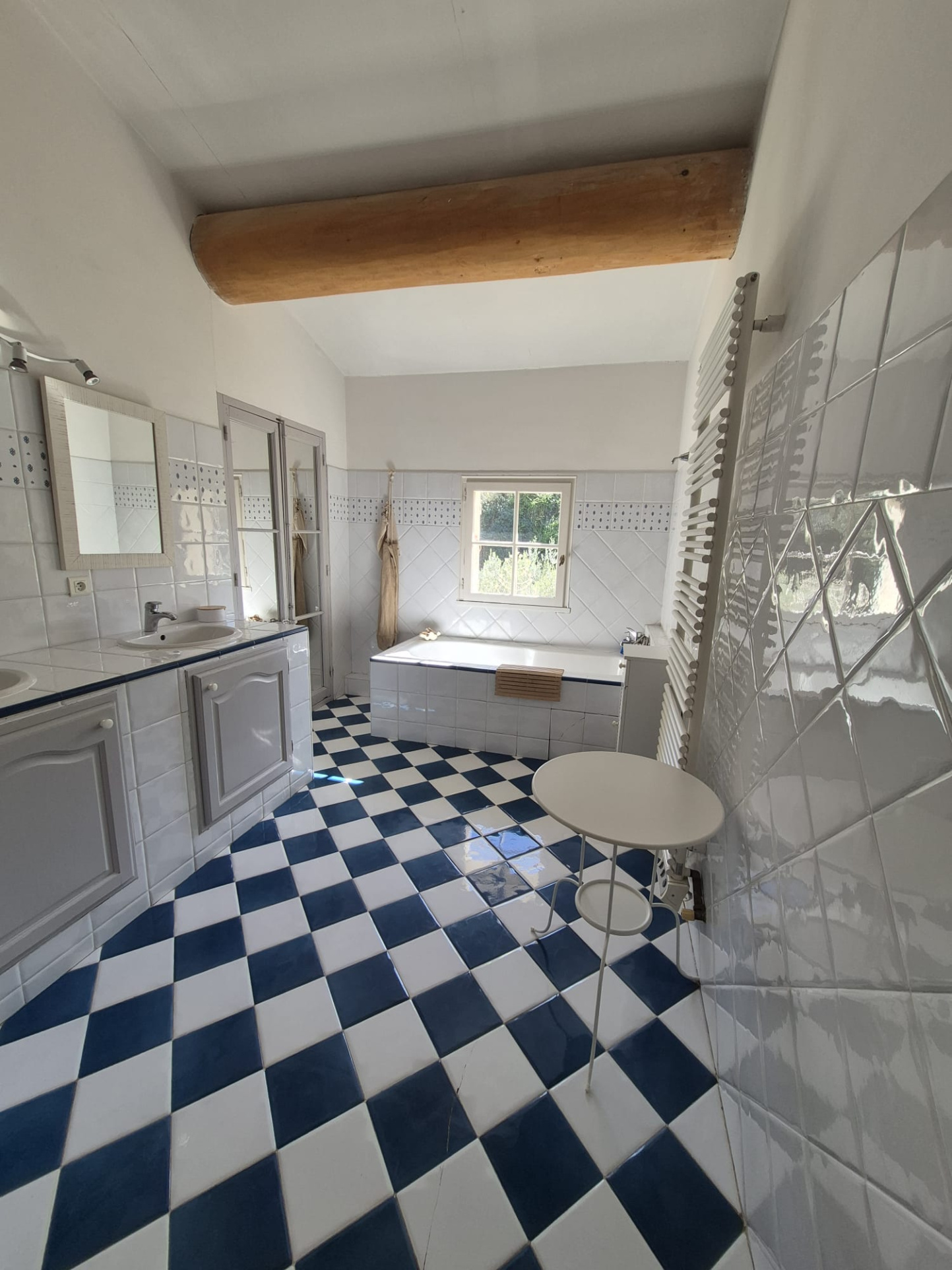 Prestations : menuiseries bois double vitrage + volets bois à l'ancienne - chauffage gaz de ville + climatisations - Eau de ville + forage + tout à l'égout, arrosage automatique, piscine 9x4, portail automatique.