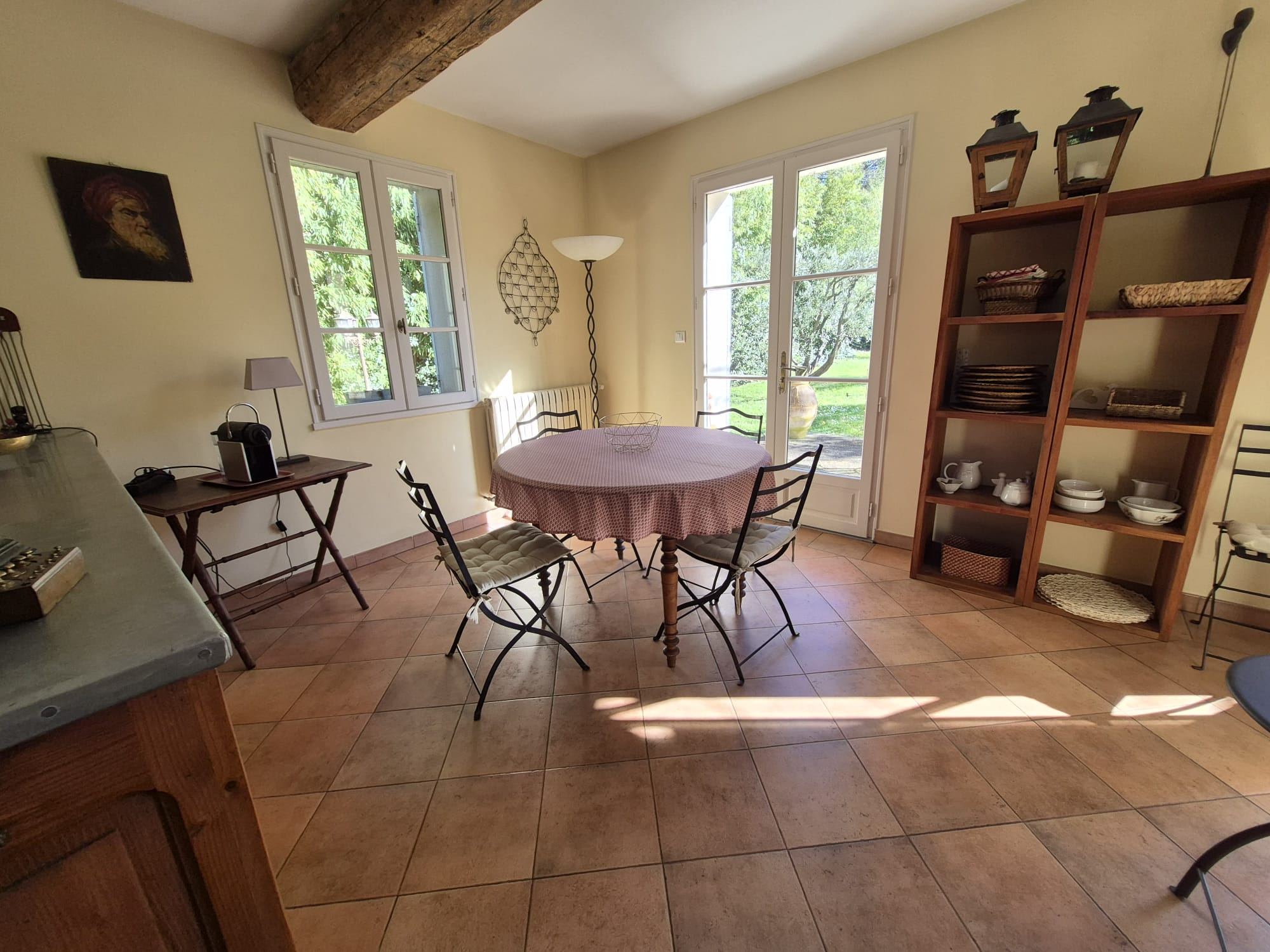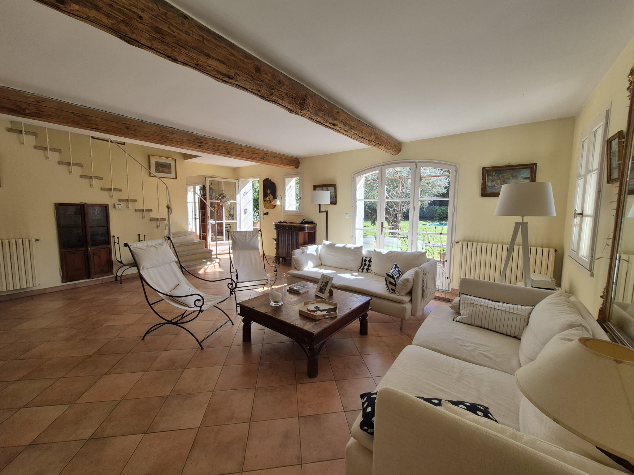 A Eyragues, dans quartier prisé, venez découvrir cette belle maison de construction qualitative de 170 m2 au charme fou, qui vous séduira dès votre arrivée ! un havre de paix dans un écrin de verdure et baignée de lumière ! Elle comprend au rez-de-chaussée : une cuisine équipée séparée, une pièce de vie de 35 m2 avec cheminée et une salle d'eau avec w.c.. Un demi-palier conduit à une pièce de 23 m2 (grande chambre). L'étage offre : 2 autres grandes chambres avec placards (16 et 18 m2), une salle de bains et un w.c. indépendant. A un niveau inférieur, un sous-sol de 38 m2 isolé avec de nombreuses ouverture) accueille : une laverie, un dressing et une grande pièce de 19 m2 (espace avec entrée indépendante), l'ensemble sur un beau terrain clôturé et paysagé de 1297 m2 accuillant une piscine de 9 x 4 avec local technique.