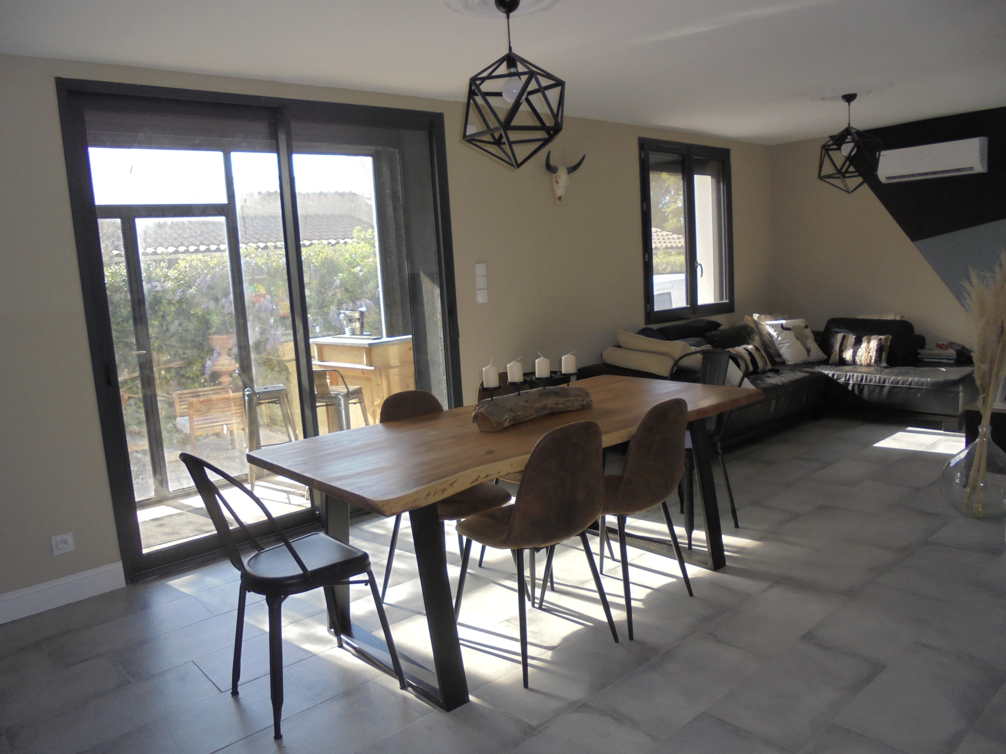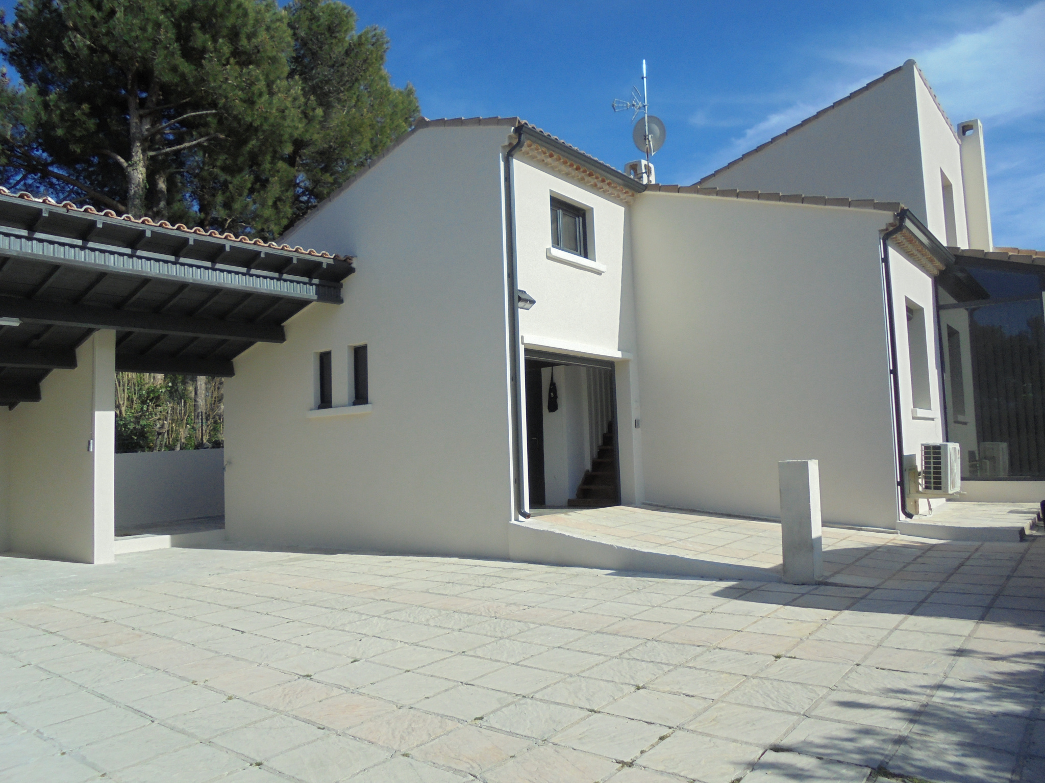 Prestations : climatisation réversible, poêle à granules, menuiseries PVC et alu double vitrage, cuisine équipée neuve, puits en pierre pour arrosage, eau de ville, tout à l'égout