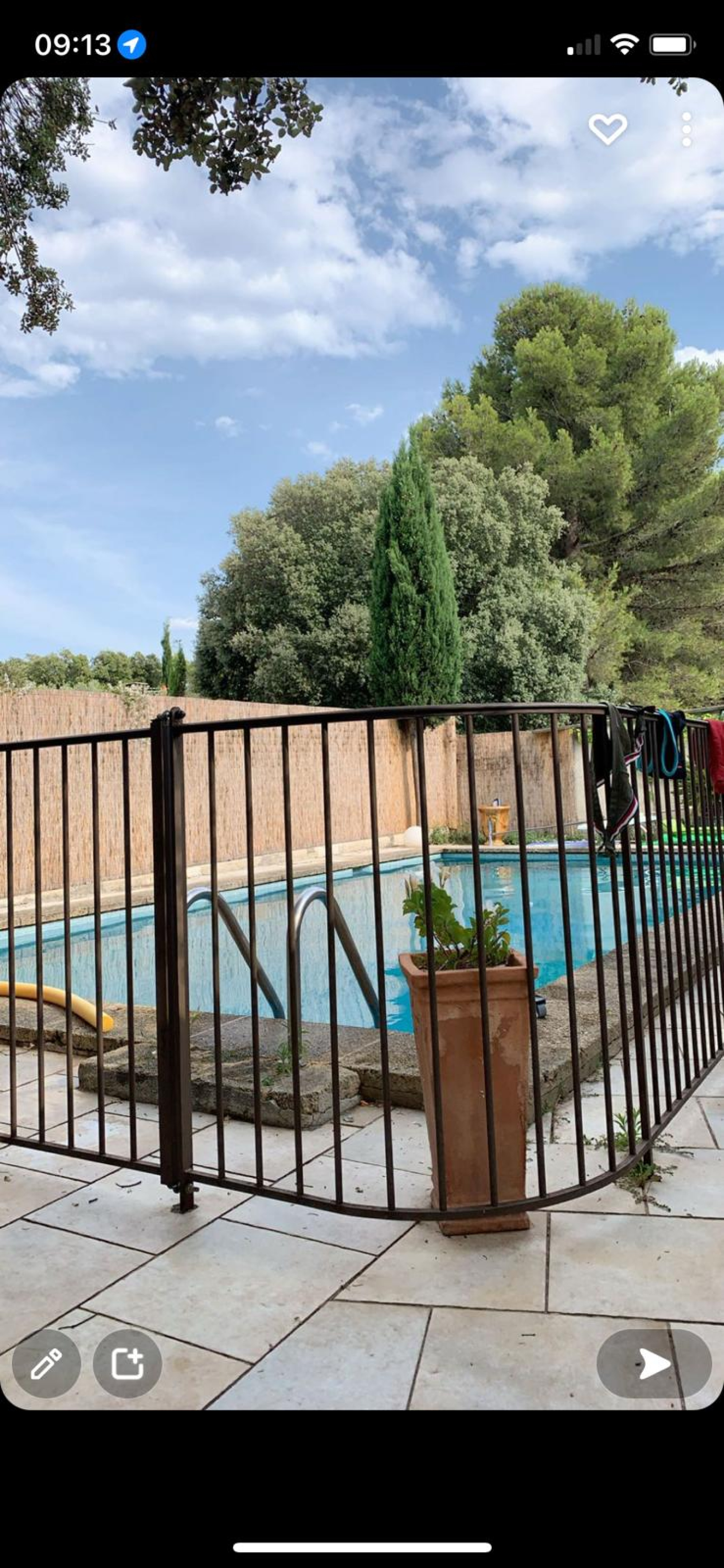 Prestations : menuiseries double vitrage fer et alu, portail automatique, gouttières zinc, chauffage par pompe à chaleur, climatisations réversibles, piscine 10 x 5, volets alu, alarme, eau de ville et tout à l'égout.