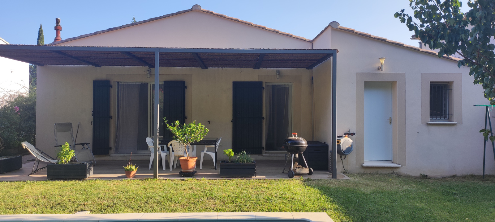 *** SOUS COMPROMIS *** EXCLUSIVITE A EYRAGUES ! En lotissement résidentiel, maison de plain-pied, construction qualitative année 2014, d'une superficie de 85 m2 avec garage attenant de 22 m2, exposition plein Sud, comprenant une belle pièce de vie de 40 m2 avec cuisine équipée ouverte, trois chambres, une salle d'eau et un w.c. indépendant, l'ensemble sur un terrain clôturé et arboré de 500 m2 avec piscine 6x4 - terrasse et pergola en fer forgé - Parkings de stationnement + garage. Maison récente aux normes RT 2012 facile à vivre, vous n'aurez plus qu'à vous y poser ! faible consommation énergétique