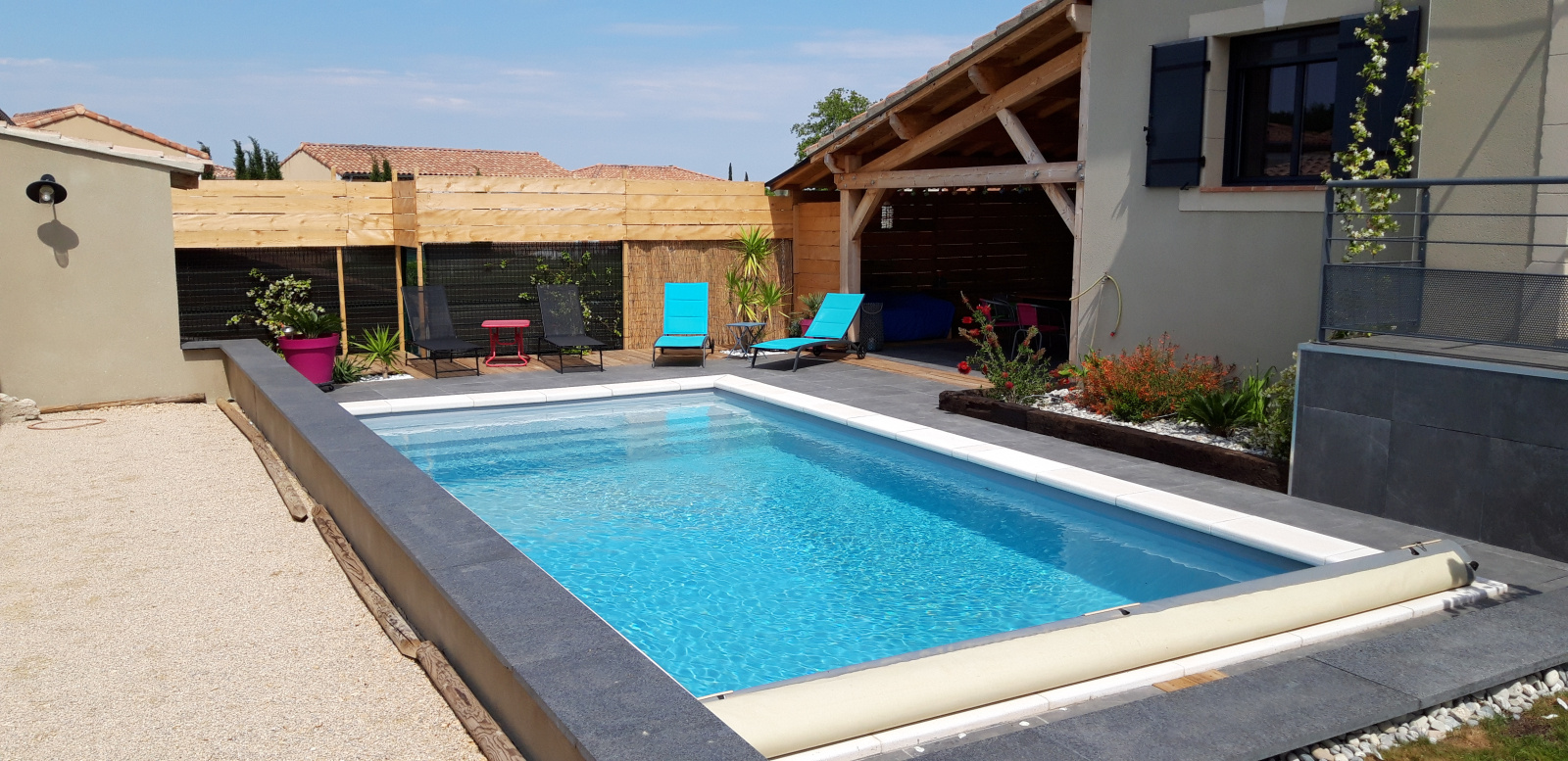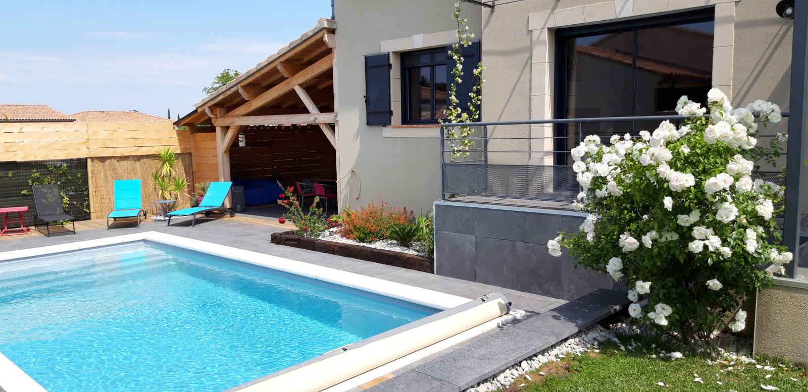 *** VENDU *** Située dans un environnement résidentiel au calme et proche du centre du village, venez visiter cette belle villa de 173 m2, année 2011, très lumineuse et agréable à vivre, Elle vous séduira par ses grands volumes et sa modernité ! Le rez-de-chaussée comprend une grande pièce de vie avec cuisine verrière de 65 m2, une suite parentale avec salle d'eaau et dressing; w.c. indépendant, buanderie, garage ; l'étage offre quatre chambres, une salle d'eau avec w.c., dressings, grand dégagement. Viennent compéter ce bel ensemble une piscine au sel de 8 X 4 avec grande cuisine d'été équipée. Joli jardin paysagé et clôturé de 505 m2.
